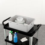 These commercial bus tubs are stackable to fit neatly on top of one another, allowing for organized use of storage space. These tubs help keep clutter to a minimum, reducing the amount of space being taken up.