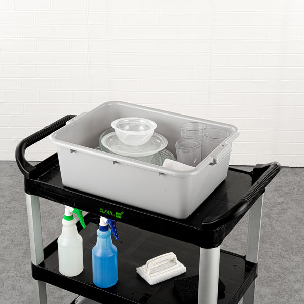 GRAY PLASTIC BUS TUB - DEEP, EASY GRIP