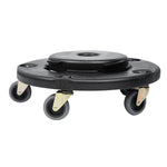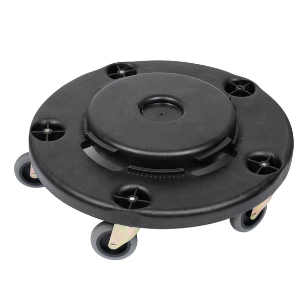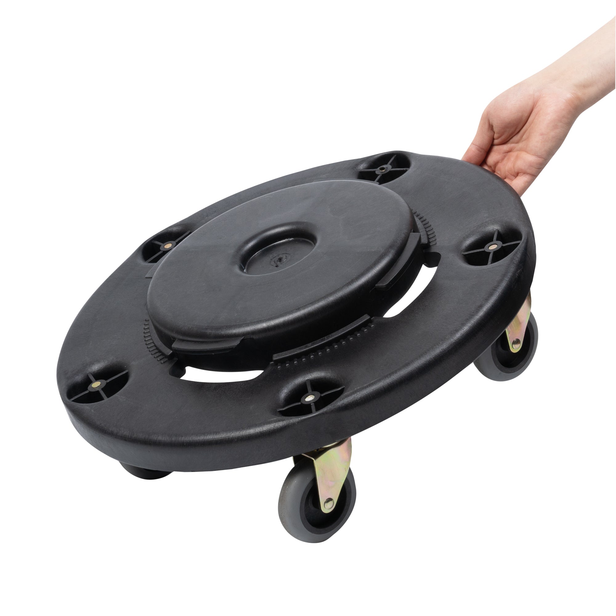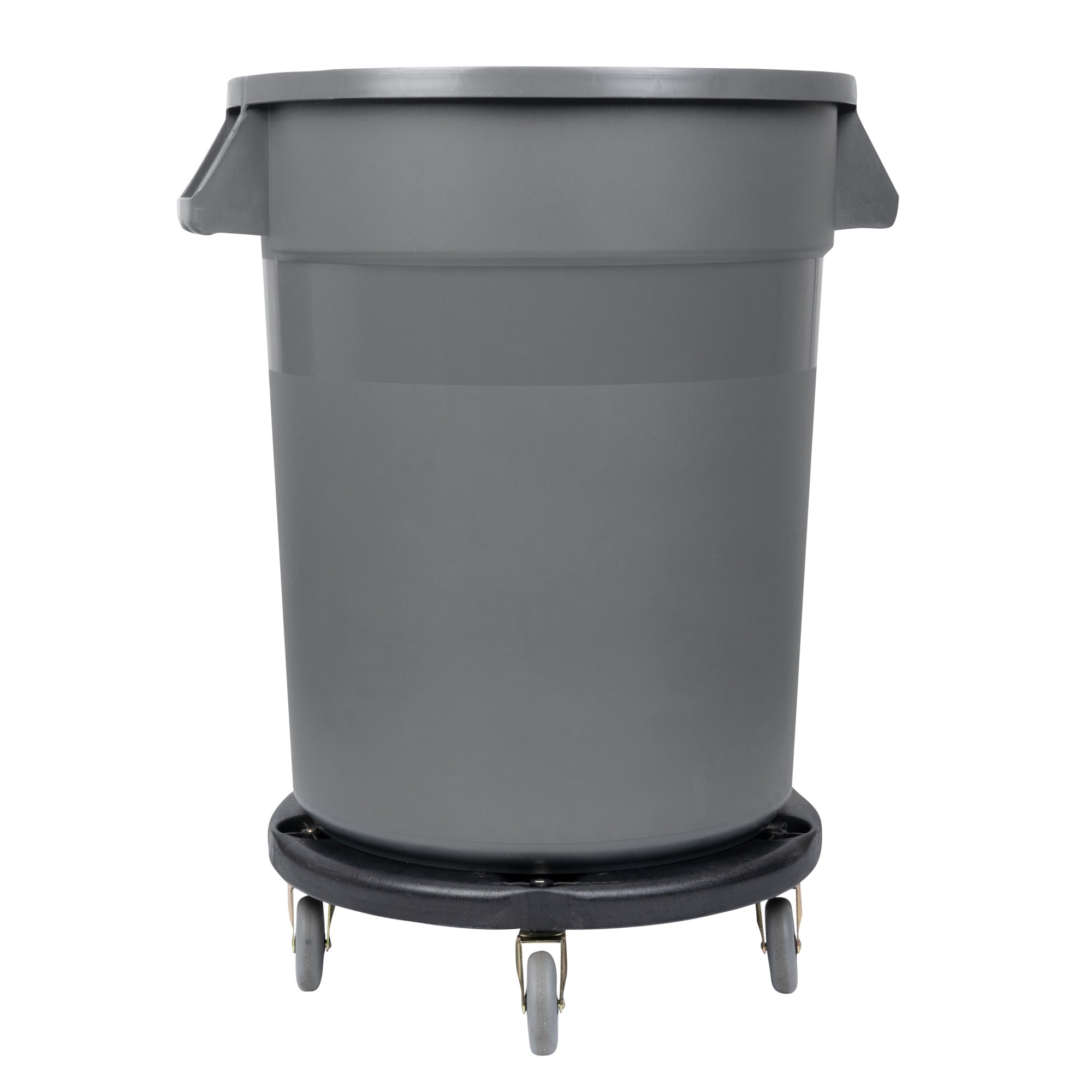 Streamline your waste management tasks with our RW Clean Plastic Commercial Trash Can / Ingredient Bin Dolly. This trash can dolly can be paired with its compatible 20-, 32-, 44-, and 55-gallon bins (SKU: RWT1329GR, RWT1330GR, RWT1331GR, and RWT1332GR) to provide mobility to your storage bins for easy transportation throughout your facility. With its 5 swivel rubber casters, this garbage can dolly ensures smooth, quiet, and non-disruptive rolling through your restaurant, kitchen, or bakery. This garbage bin dolly is designed with a secure twist mechanism that ensures your trash or ingredient bins stay in place during transit. Built for heavy-duty use, this trash bin dolly can hold up to 250 pounds, significantly reducing strain on your staff. This drum dolly measures 18 inches in diameter by 6.25 inches in height. Sold in a 1 count box. Trash can is available and sold separately.