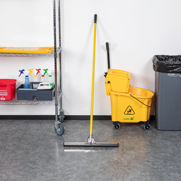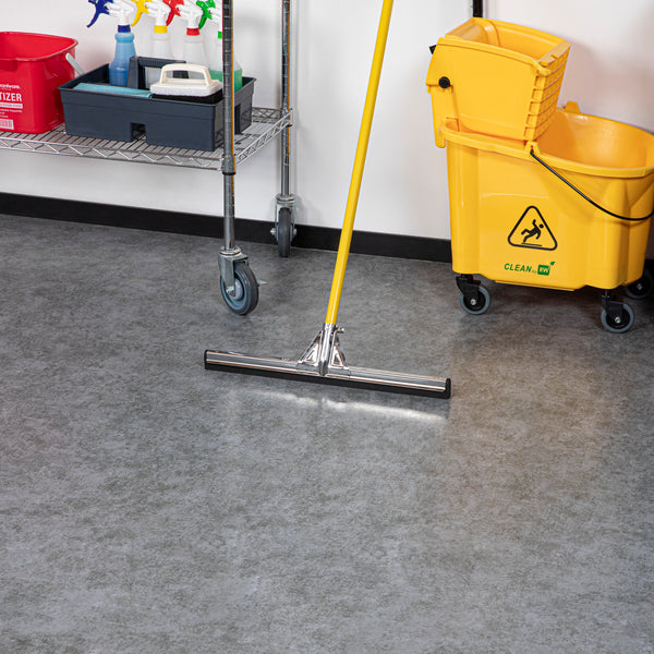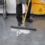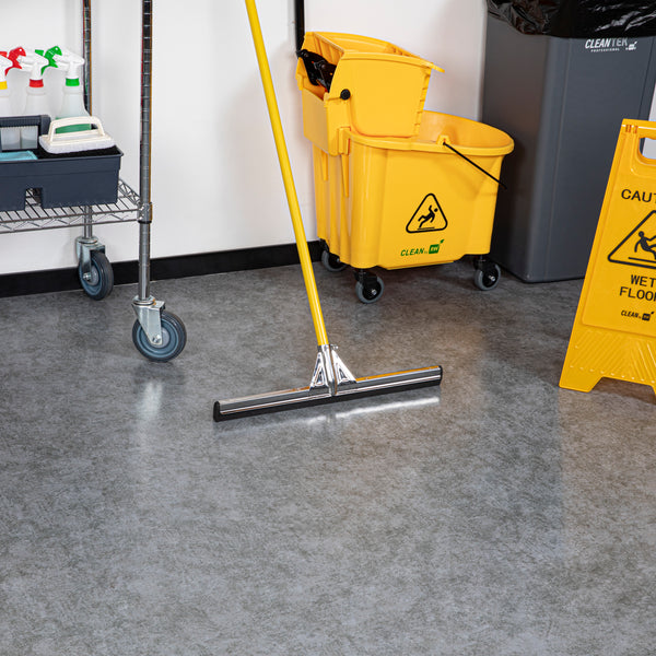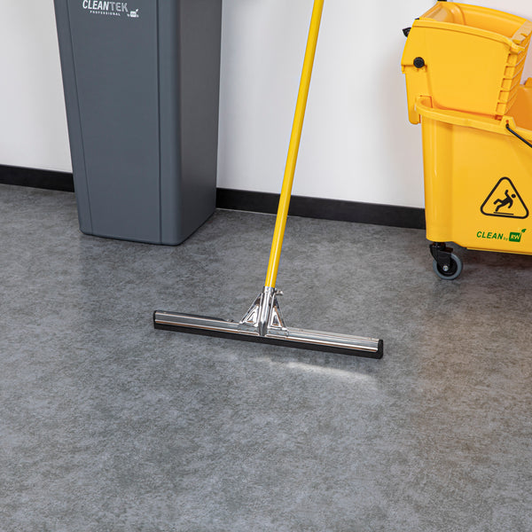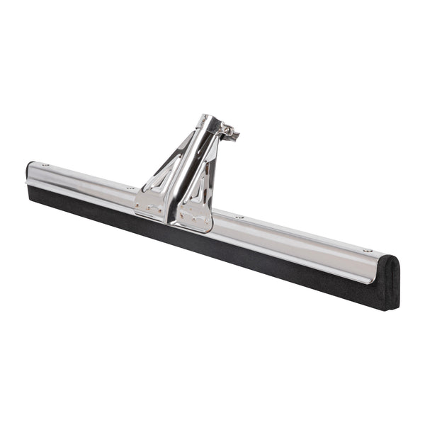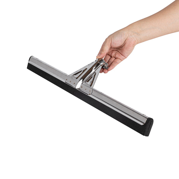 Maintain shiny and streak-free floors with our RW Clean Stainless Steel Floor Squeegee. With a stainless steel construction, this long-lasting floor squeegee is durable enough to handle a strong amount of pressure and has a built-in splash guard to prevent water from washing over the frame. This foam squeegee has an adjustable handle socket to securely screw on handles for a perfect fit. Complete this floor squeegee head with its coordinating handle (SKU: RWT0575Y) to easily clean surfaces. Handle is sold separately. Equipped with a 5-inch thick double foam blade, this commercial floor squeegee is designed to easily wipe away large amounts of water and debris. This heavy-duty floor mat is suitable for smooth and textured floors and conveniently speeds up your dry time. Measuring 21.5 inches long, this foam floor squeegee is available in a 1 count box.