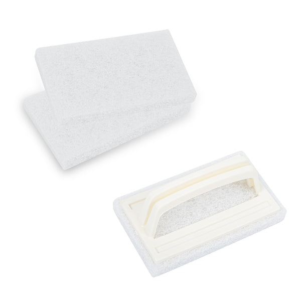 WHITE SCOURING PAD - MULTI-PURPOSE, LIGHT DUTY, WITH HANDLE