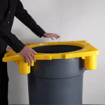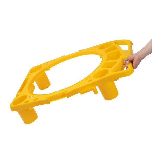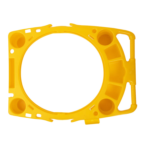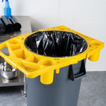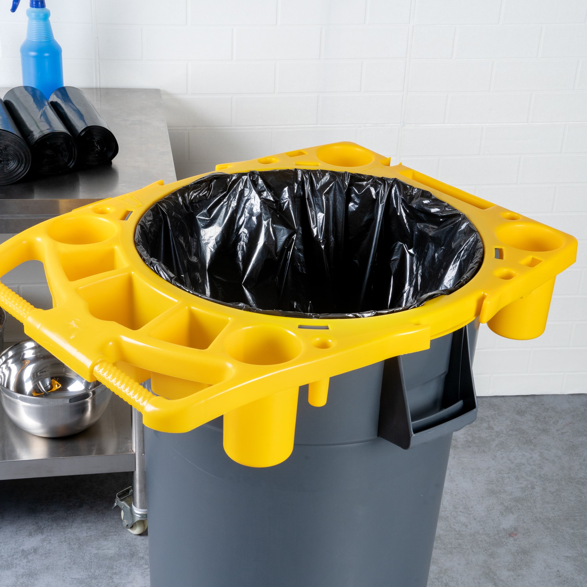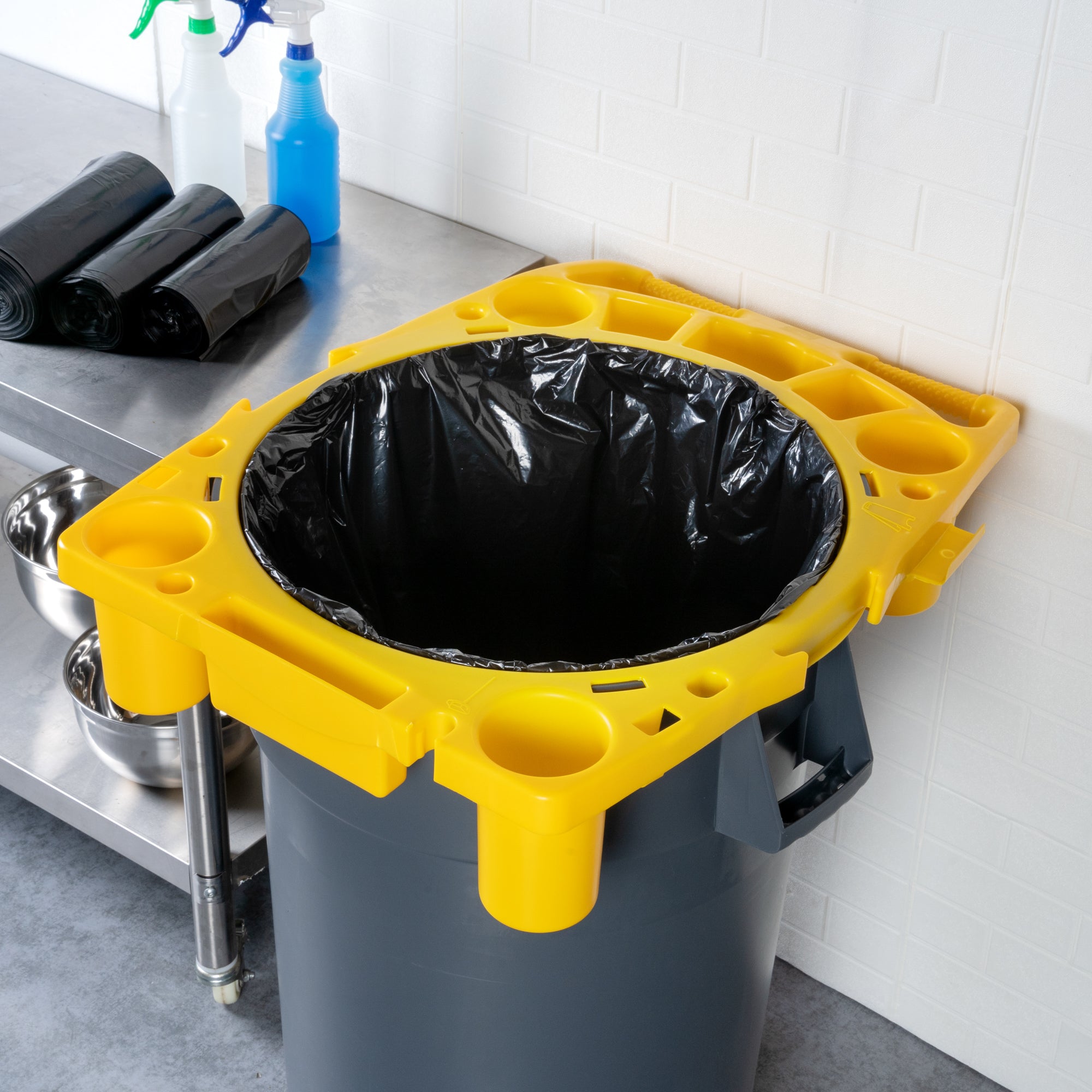 Streamline your waste management or ingredient storage with our RW Clean Yellow Plastic Commercial Trash Can / Ingredient Bin Caddy. Designed to fit its compatible 44-gallon bin (SKU: RWT1336GR), this cleaning caddy is an essential tool for any busy kitchen or catering environment. This garbage can caddy is designed with storage compartments and hooks to provide storage for various cleaning items such as spray bottles, brooms, liners, and wet floor signs. With an easy snap-on design, this cleaning supply caddy ensures a secure fit and simple attachment on the rim of the trash bin, making it perfect for efficient waste disposal. This trash can caddy boasts a robust plastic construction that can withstand the demands of cafes, hotels, or delis. Measuring 31.75 inches in length by 25.75 inches in width by 7 inches in height, this plastic caddy is an ideal storage solution for your cleaning supplies. Sold in a 1 count box. Trash can is available and sold separately.