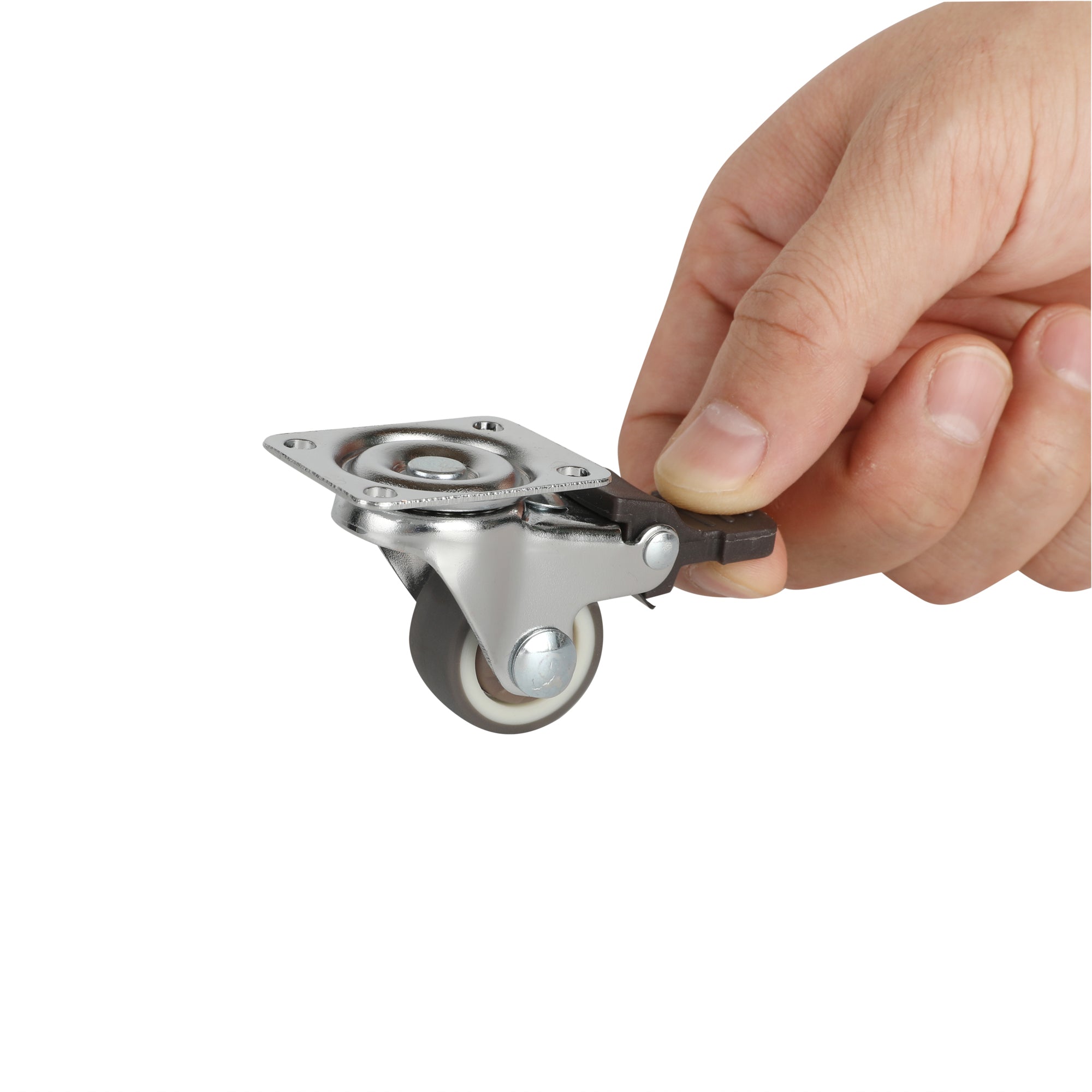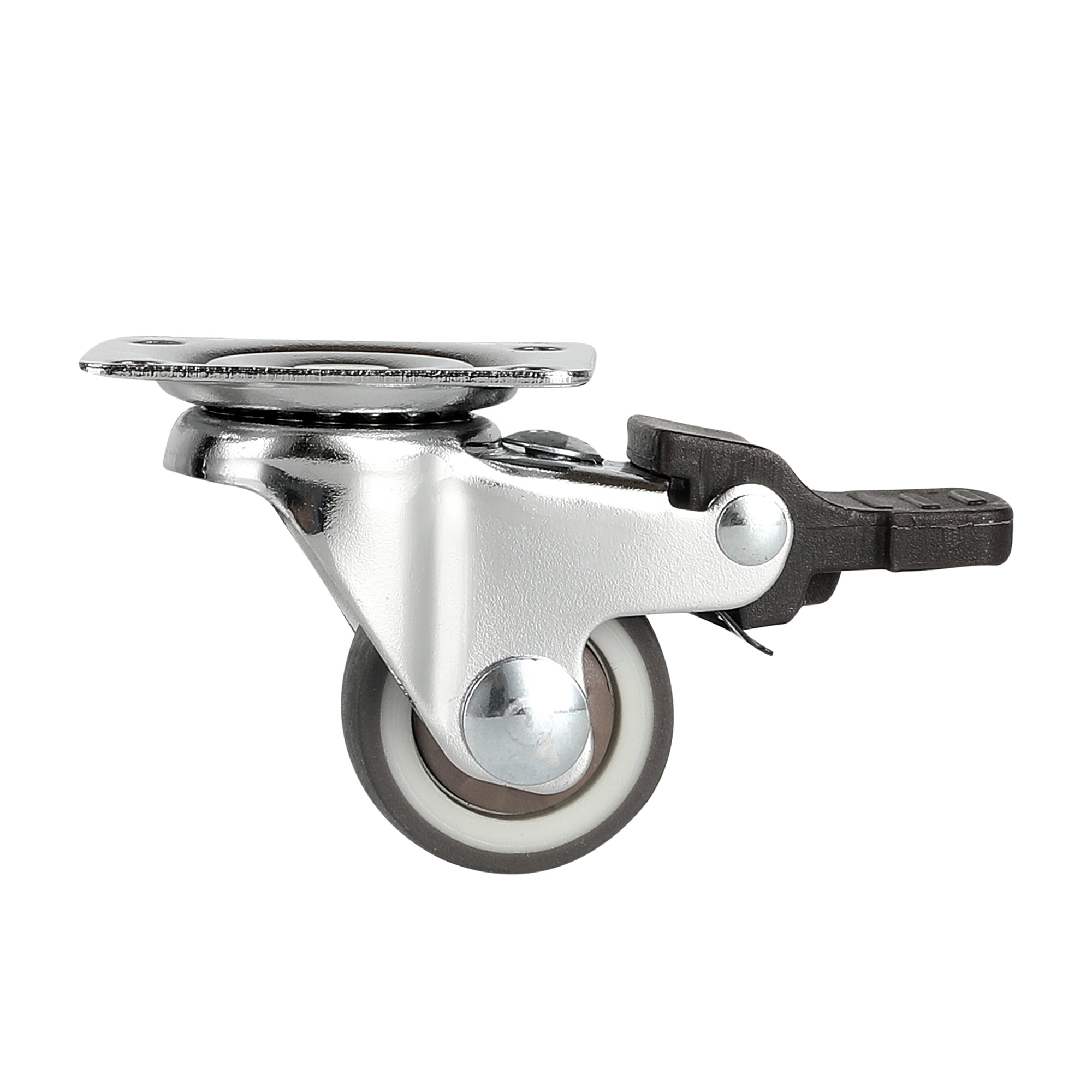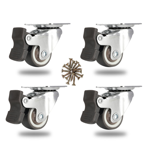 GRAY SWIVEL PLATE CASTER - WITH BRAKES AND MOUNTING HARDWARE