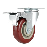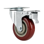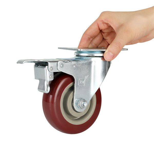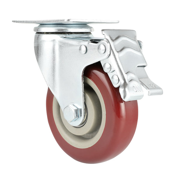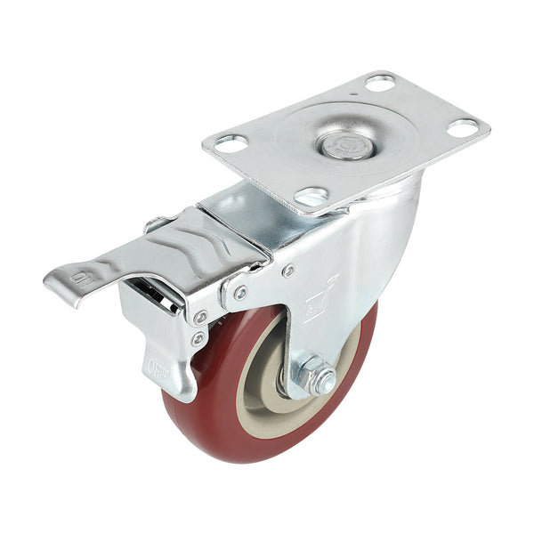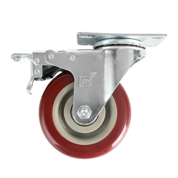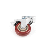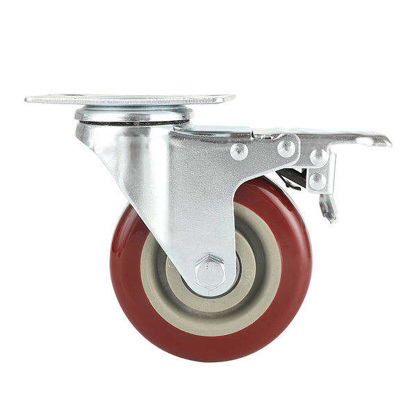 RED SWIVEL PLATE CASTER - WITH BRAKES AND MOUNTING HARDWARE