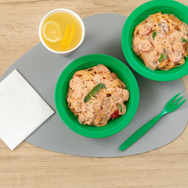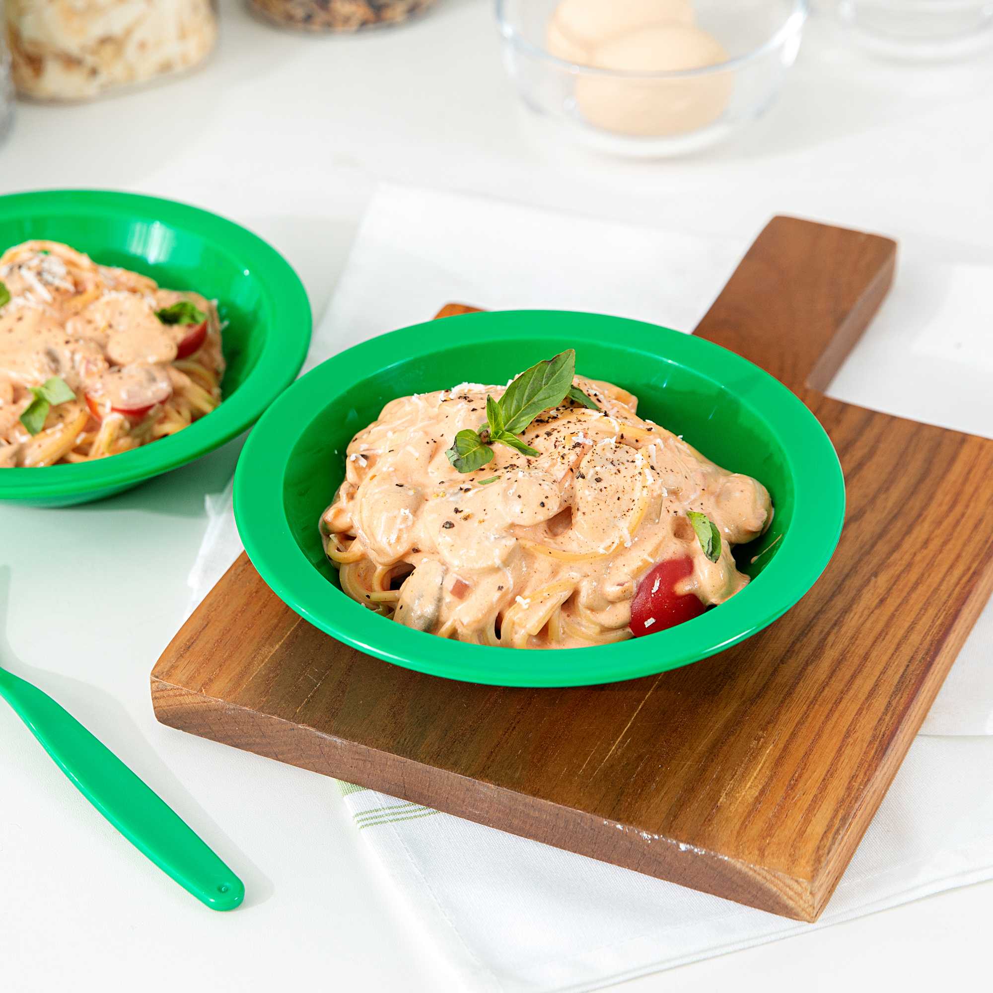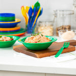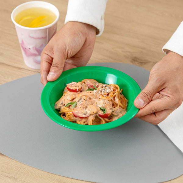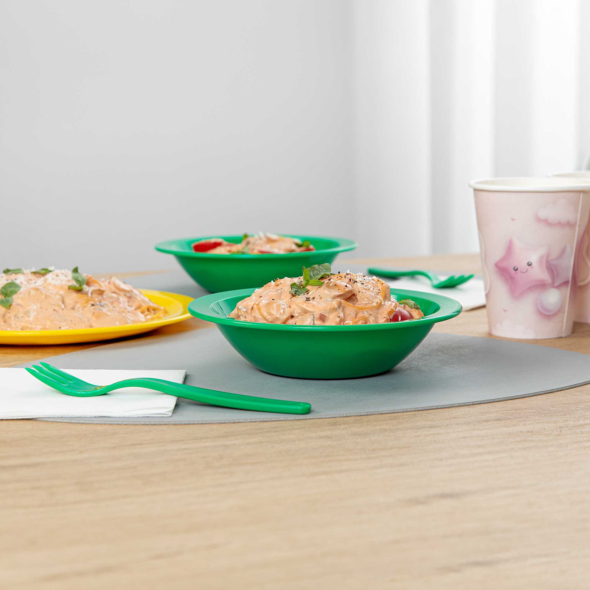 Enhance your dining experience with virtually unbreakable tableware. The RW Kids Shatterproof Round Plastic Bowl provides a safe and playful option for children's meals, featuring a durable plastic construction that ensures longevity in bustling foodservice settings. With its vibrant green color, this kids plastic bowl adds a touch of fun, perfect for schools and family-friendly restaurants. A 14-ounce capacity offers an ideal portion size, whether serving soups or cereals, while its lightweight design encourages self-feeding among young diners. The stackable construction maximizes storage efficiency, making it a practical choice for space-conscious kitchens. For added convenience, this unbreakable bowl is microwave-safe, simplifying reheating tasks in busy environments. Invest in reliable, child-friendly tableware that promises reduced replacement costs and operational efficiency. Sold in a 10 count box.