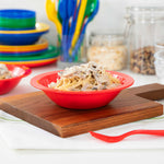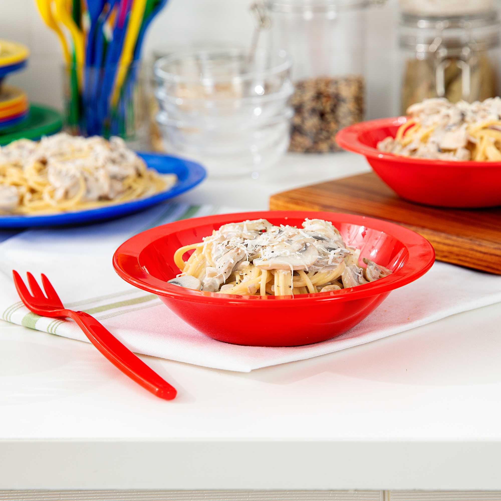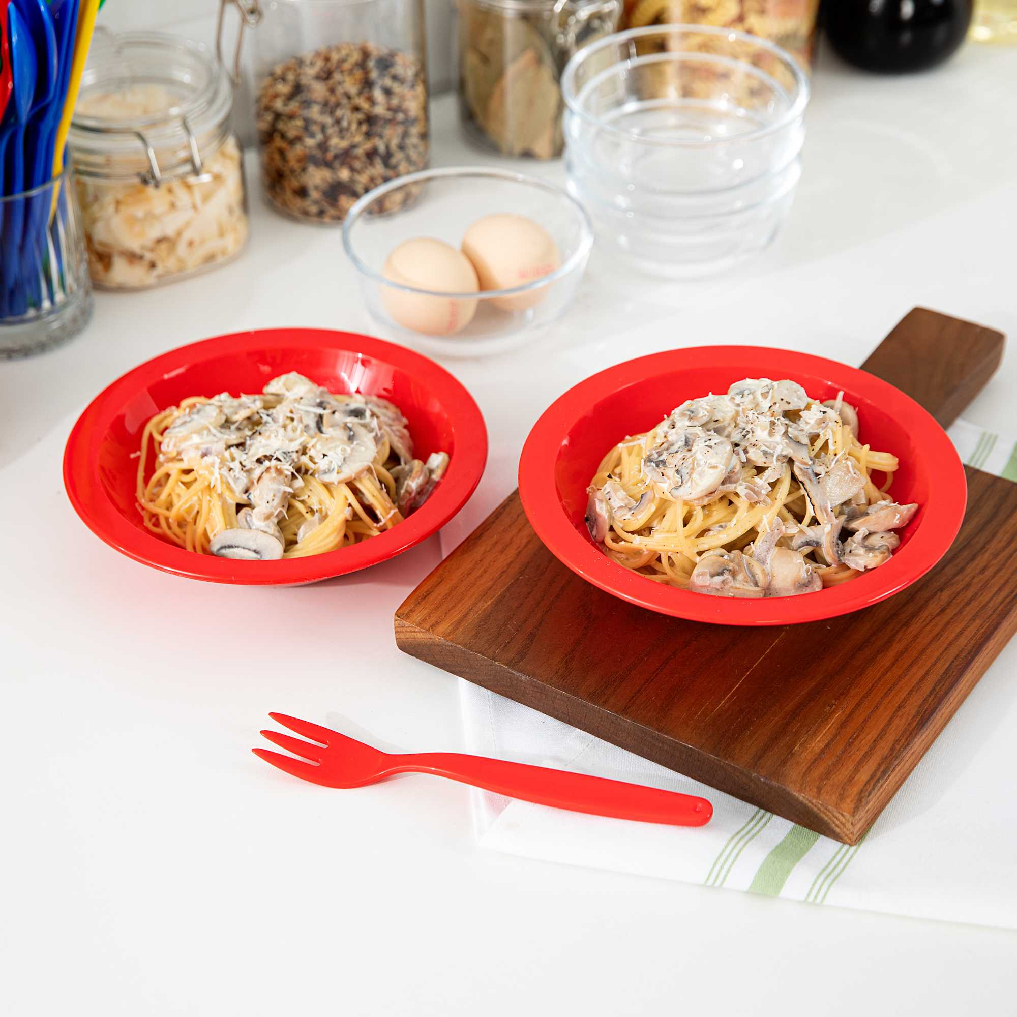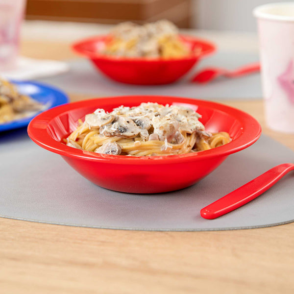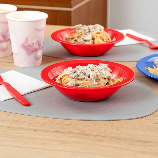 Ensure safe, stress-free dining for young patrons with shatterproof design. The RW Kids Children's Plastic Bowl combines a virtually unbreakable structure with a vibrant red finish, perfect for enhancing table appeal in bustling family restaurants. Crafted from durable plastic, this children's plastic bowl withstands everyday use while simplifying cleanup. Its microwave-safe feature allows for quick reheating, making it an efficient choice for busy kitchens. With a 14-ounce capacity, these bowls are ideal for serving soup, cereal, or dessert portions tailored to children's menus. The stackable design maximizes storage, freeing up valuable space in compact kitchen areas. Lightweight and user-friendly, this red plastic kids bowl is easy for both staff and children to handle, reducing spill risks. Choose these impact-resistant plastic bowls to elevate your foodservice operations. Sold in a 10 count box.
