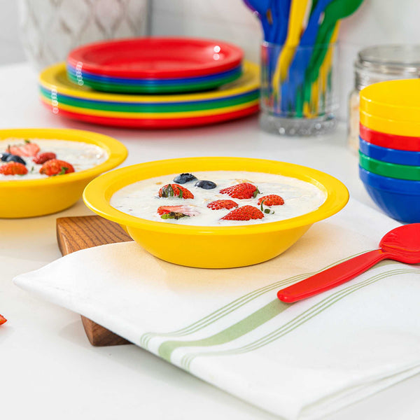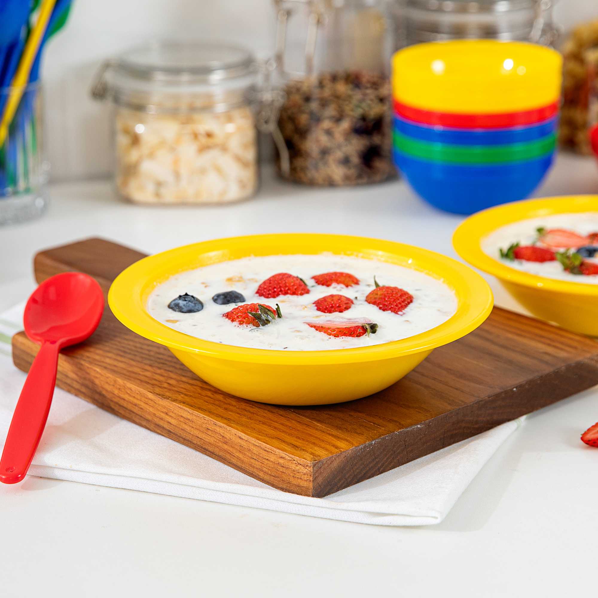 Enhance mealtime efficiency with shatterproof serving solutions. The RW Kids Shatterproof Plastic Bowl offers a virtually unbreakable design, making it an ideal unbreakable dish for schools where durability is key. With a microwave-safe feature, this bowl supports efficient meal reheating, saving valuable time in busy foodservice environments. Measuring 6.8 inches in length, it provides ample space for a variety of dishes, while its stackable construction optimizes kitchen storage, allowing you to maximize your space effortlessly. Crafted from resilient plastic, this bowl ensures lasting performance and safety, especially in settings with young children or high-traffic dining areas. Available in a vibrant yellow color, it adds a cheerful touch to any dining experience. Invest in these bowls to elevate your foodservice operations and ensure reliability in every meal service. Sold in a 10 count box.