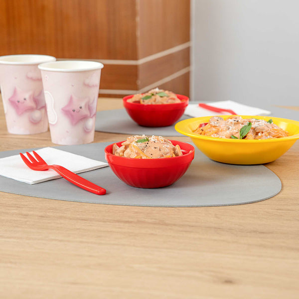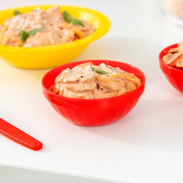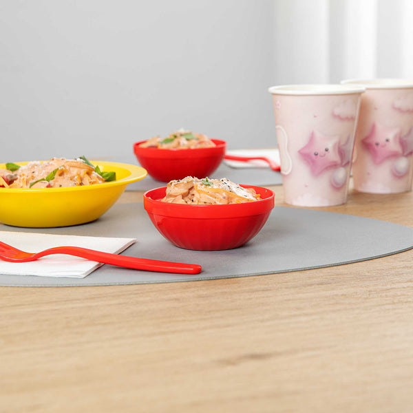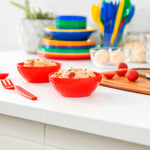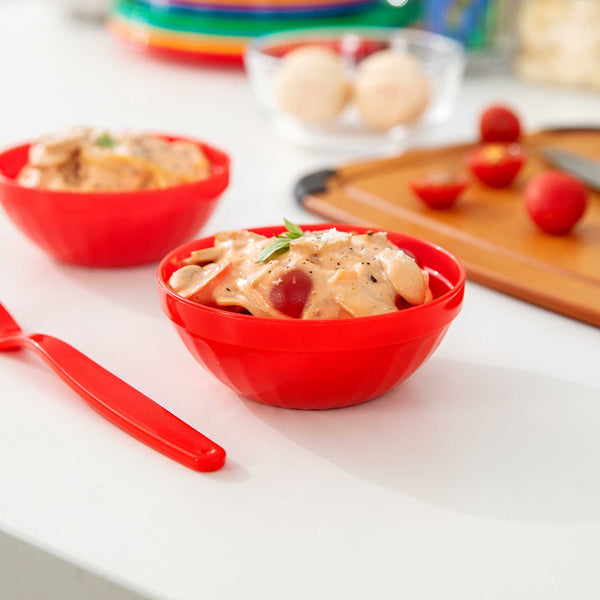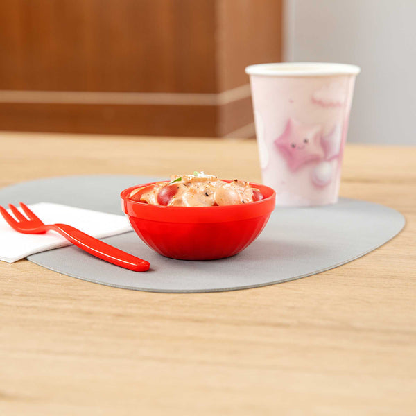 Ensure safe and engaging dining for children with unbreakable tableware. The RW Kids Shatterproof Plastic Bowl provides a virtually indestructible design that is ideal for schools and high-traffic foodservice environments, ensuring longevity and resistance to breakage. With a vibrant red color, these bowls enhance table presentation, making meals more appealing, especially for young diners. The 7-ounce capacity is perfectly suited for children's serving bowl needs, helping to reduce food waste and ensuring appropriate portion sizes. A stackable feature optimizes storage in tight spaces, saving valuable room in kitchens and serving areas. These microwave-safe plastic bowls simplify reheating, allowing for quick and efficient service. Designed with a lightweight construction, they are easy for children to handle, promoting independence during meals. Invest in these versatile bowls to enhance your foodservice operation's efficiency and appeal. Sold in a 10 count box.