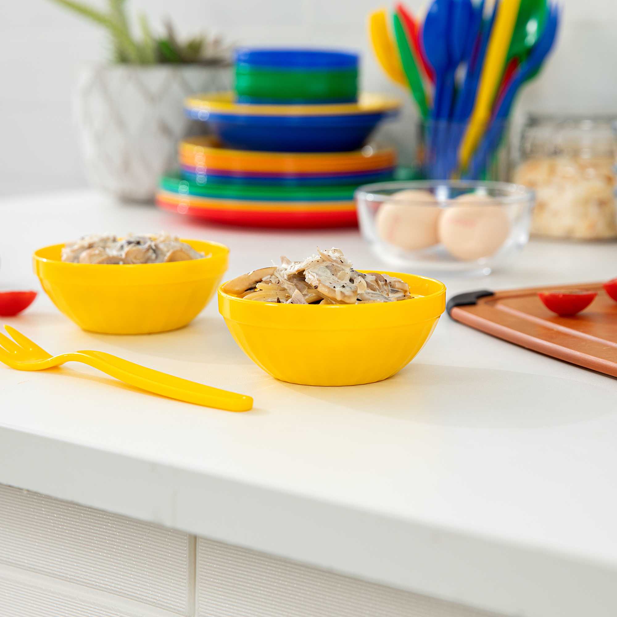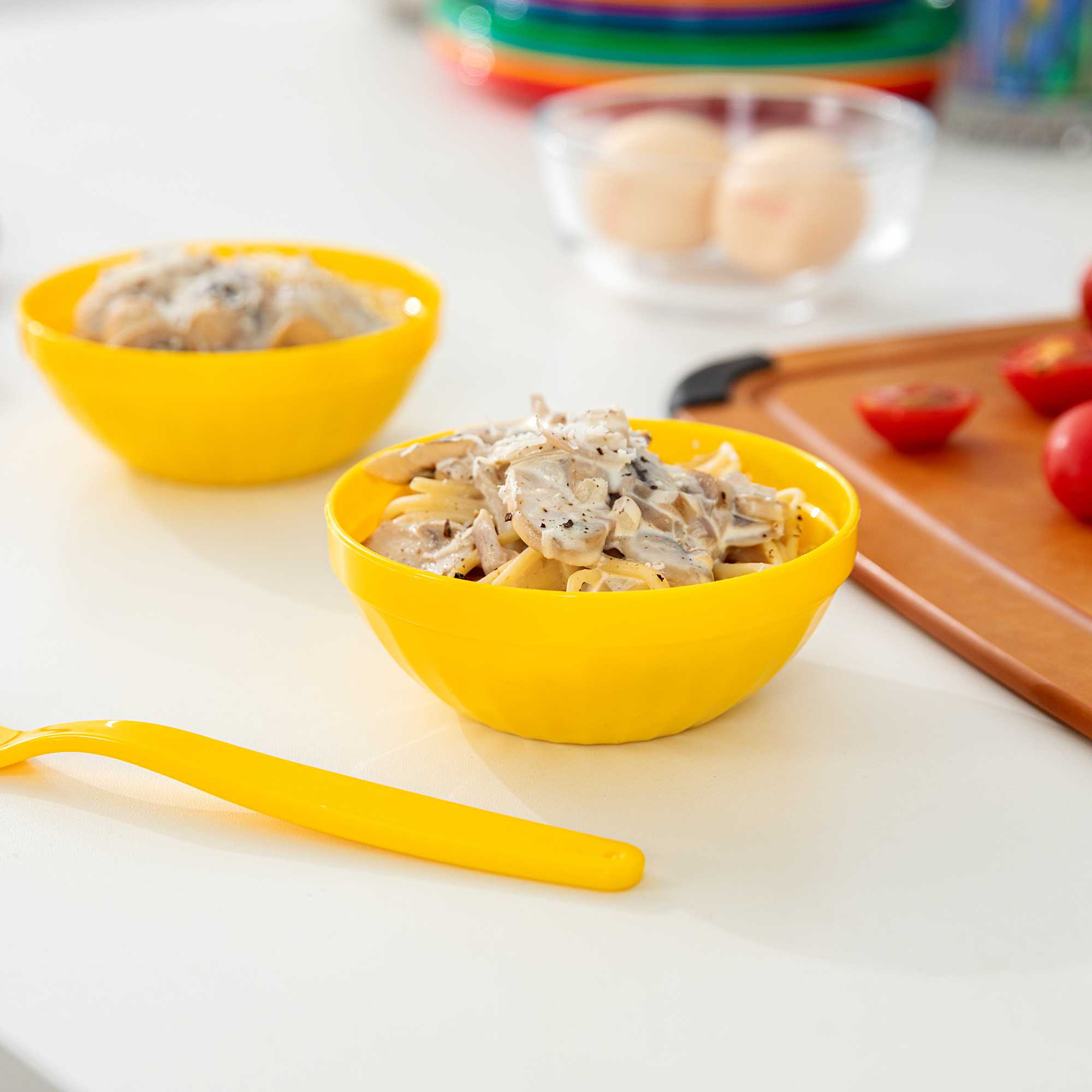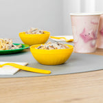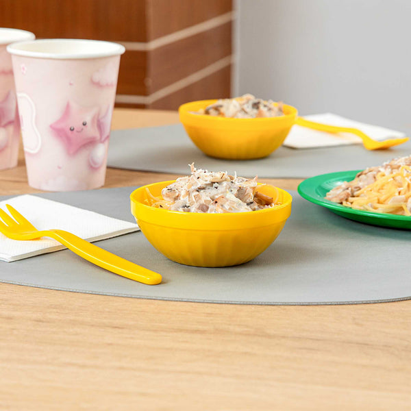Brighten up children’s meals with cheerful, durable tableware. The RW Kids Shatterproof Plastic Bowl is constructed from resilient plastic, ensuring it withstands daily use in bustling foodservice settings. With its virtually unbreakable design, this yellow plastic bowl guarantees safety in schools and daycare centers, making it a dependable choice for institutional dining. Its 7-ounce capacity provides an ideal portion size for kids' meals, minimizing food waste while the stackable feature saves valuable kitchen space. Plus, these bowls are microwave-safe, simplifying reheating tasks in busy kitchens. The vibrant yellow color not only enhances the dining experience for children but also perfectly complements family-friendly restaurant settings. Facilitate independence and ease of use with this kids serving bowl that is lightweight and easy to handle. Sold in a 10 count box.