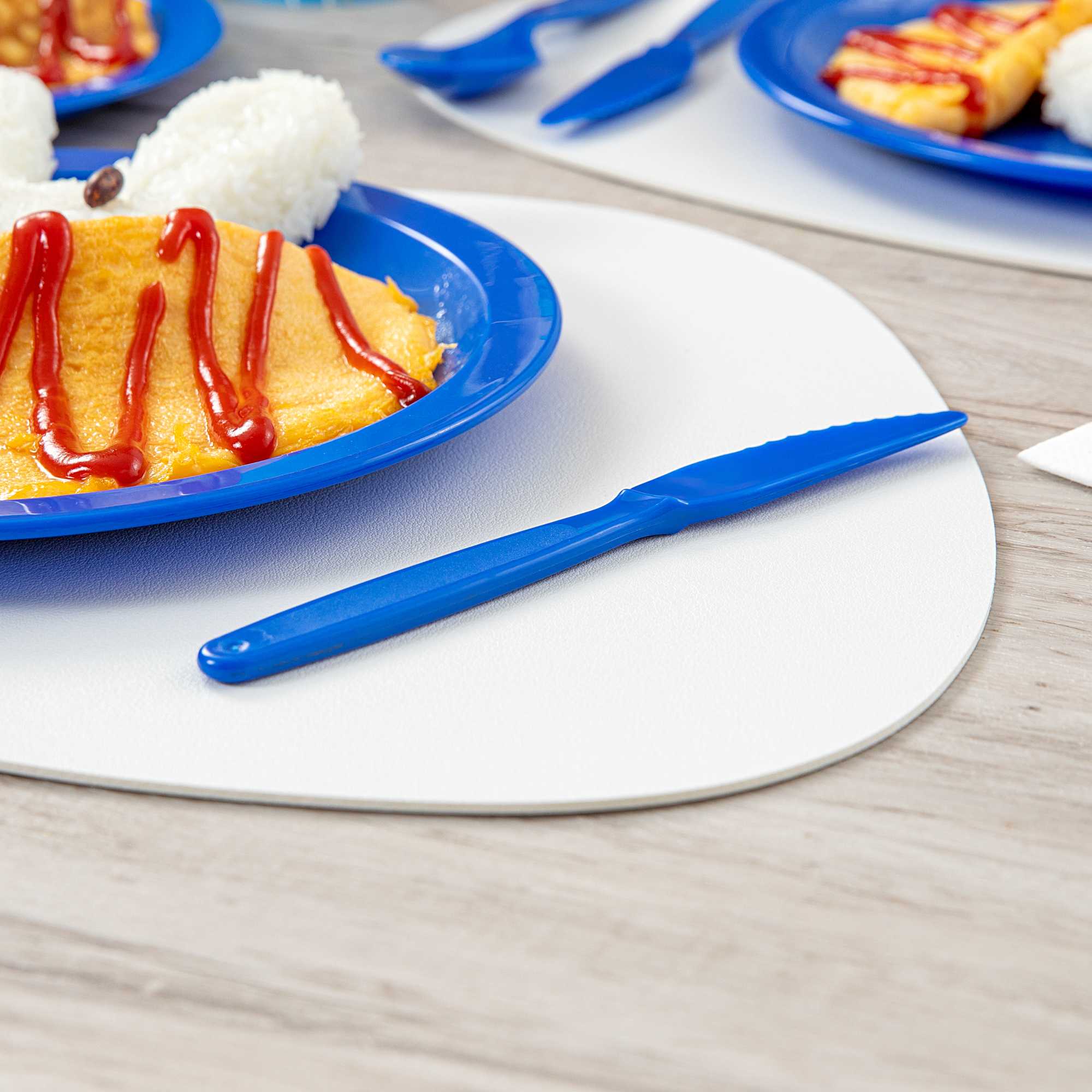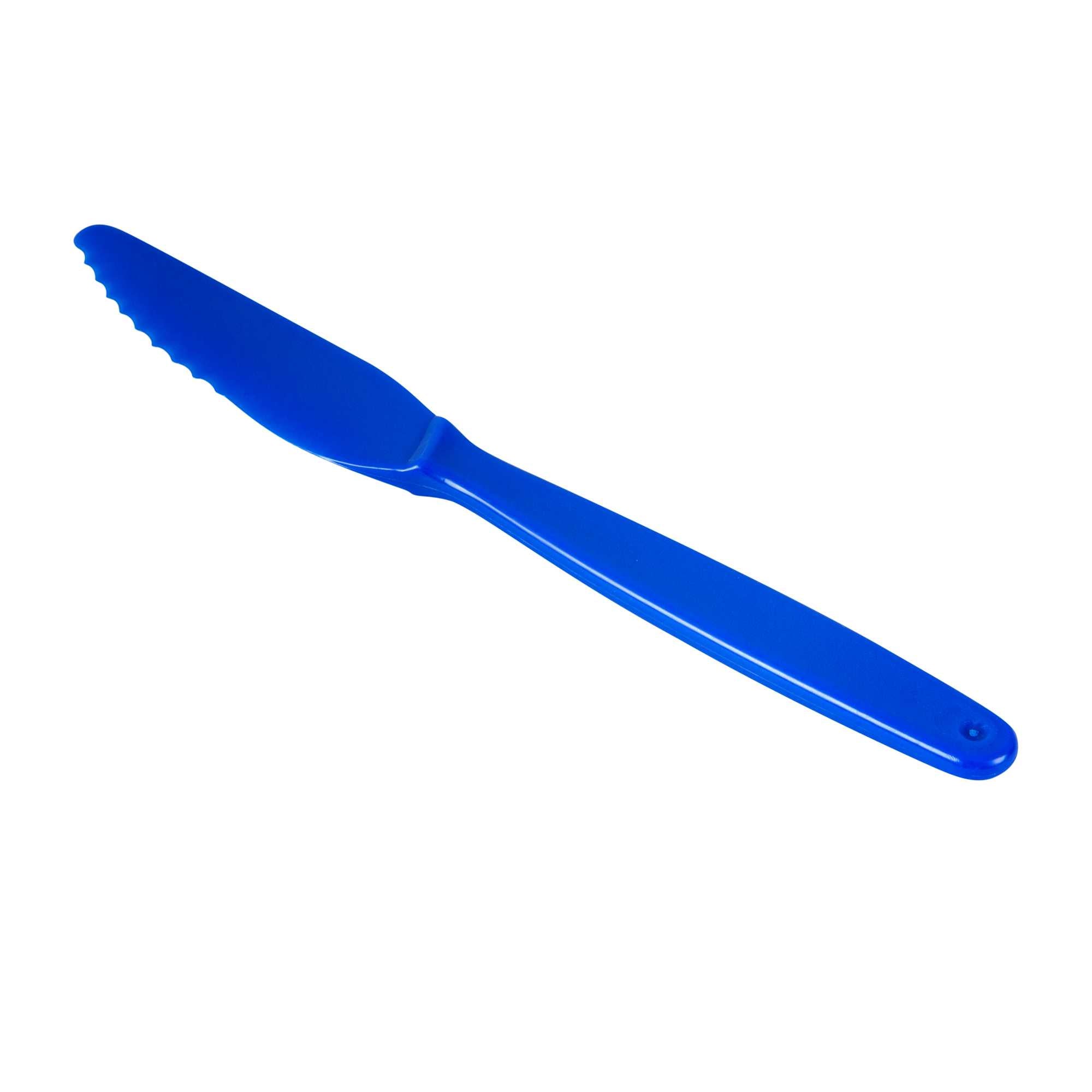Ensure safe dining with vibrant, child-friendly utensils. The RW Kids Serrated Blade Kids Knife offers a serrated blade that minimizes risk for young diners, providing peace of mind for parents and caregivers. This plastic knife, measuring 7 inches in length, is constructed from virtually unbreakable polycarbonate, ensuring durability and reducing the need for frequent replacements, especially in school cafeterias. Designed with a break-resistant feature, it promises longevity in educational settings while the dishwasher-safe attribute simplifies cleaning in high-volume environments, making it an ideal choice for busy foodservice operations. The ergonomic handle provides a comfortable grip for children, enhancing their dining experience and fostering independence. Add a splash of fun with its vibrant blue color, perfect for children's menus in restaurants and cafes. Equip your establishment with this essential kids knife today. Sold in a 10 count box.
