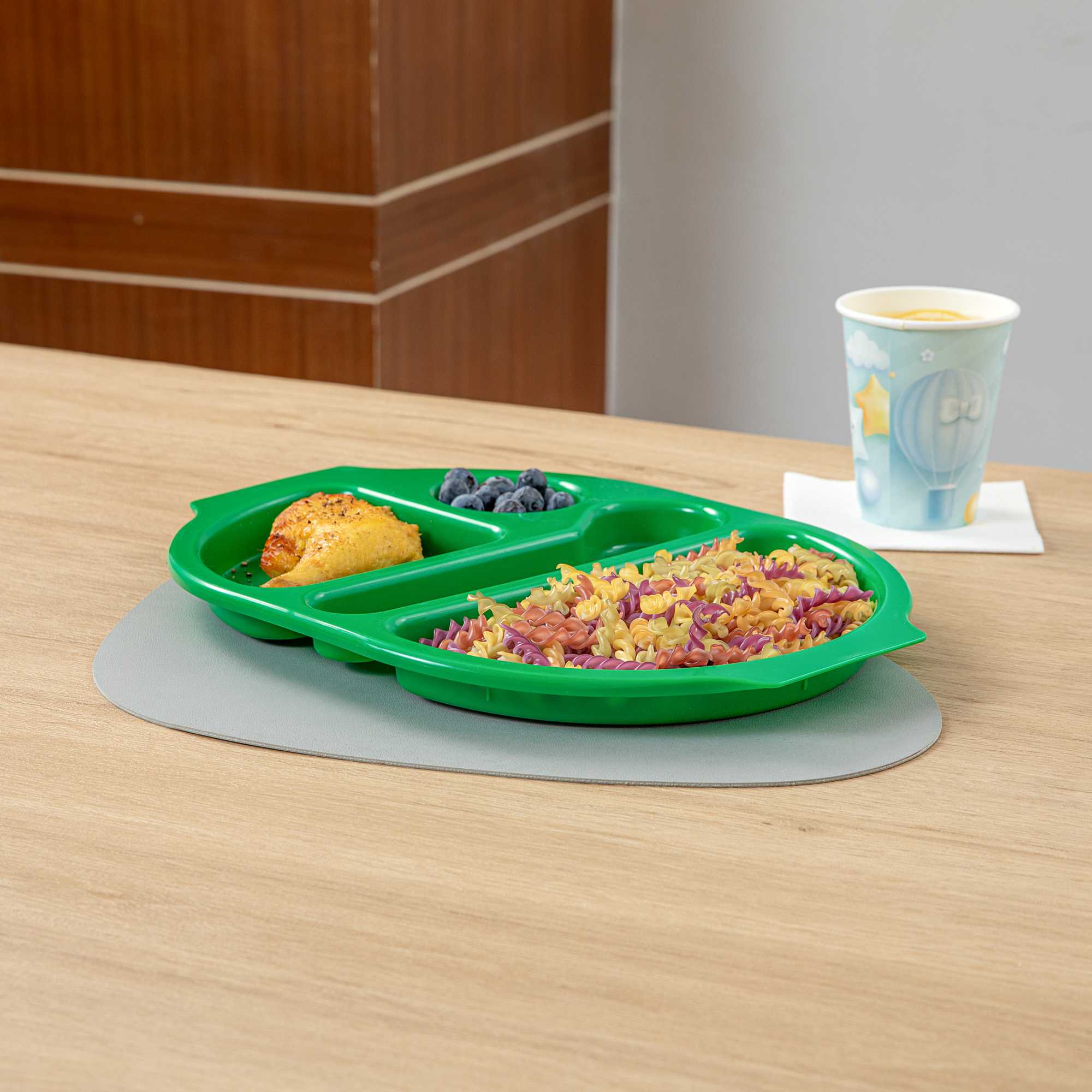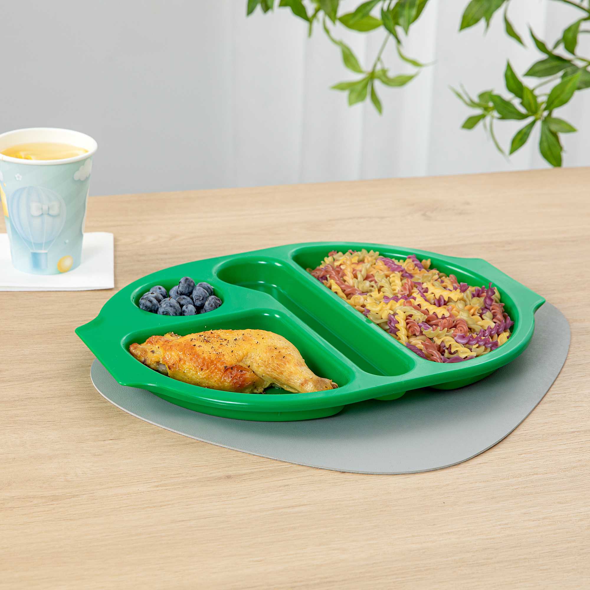 GREEN PLASTIC LUNCH TRAY - 4 COMPARTMENTS