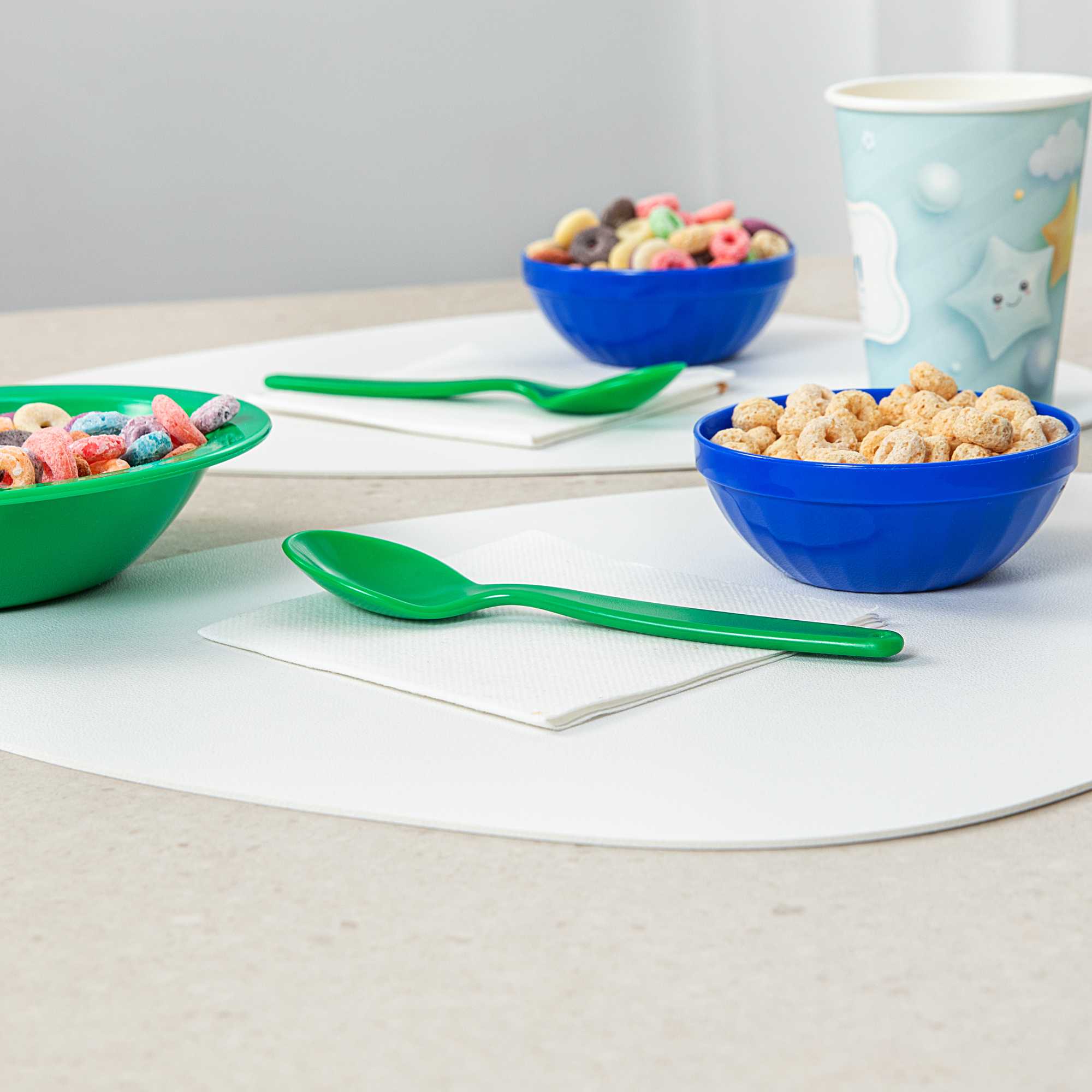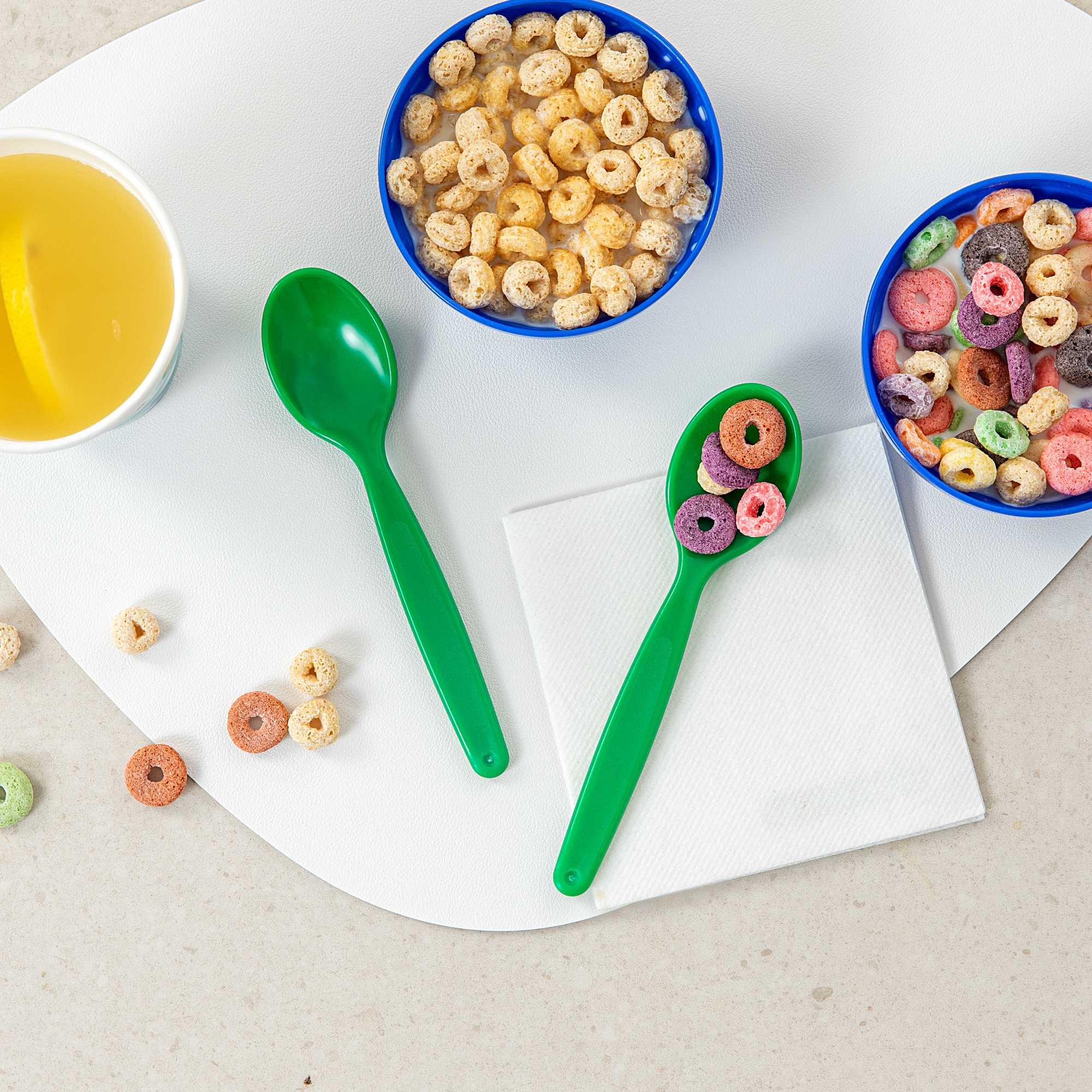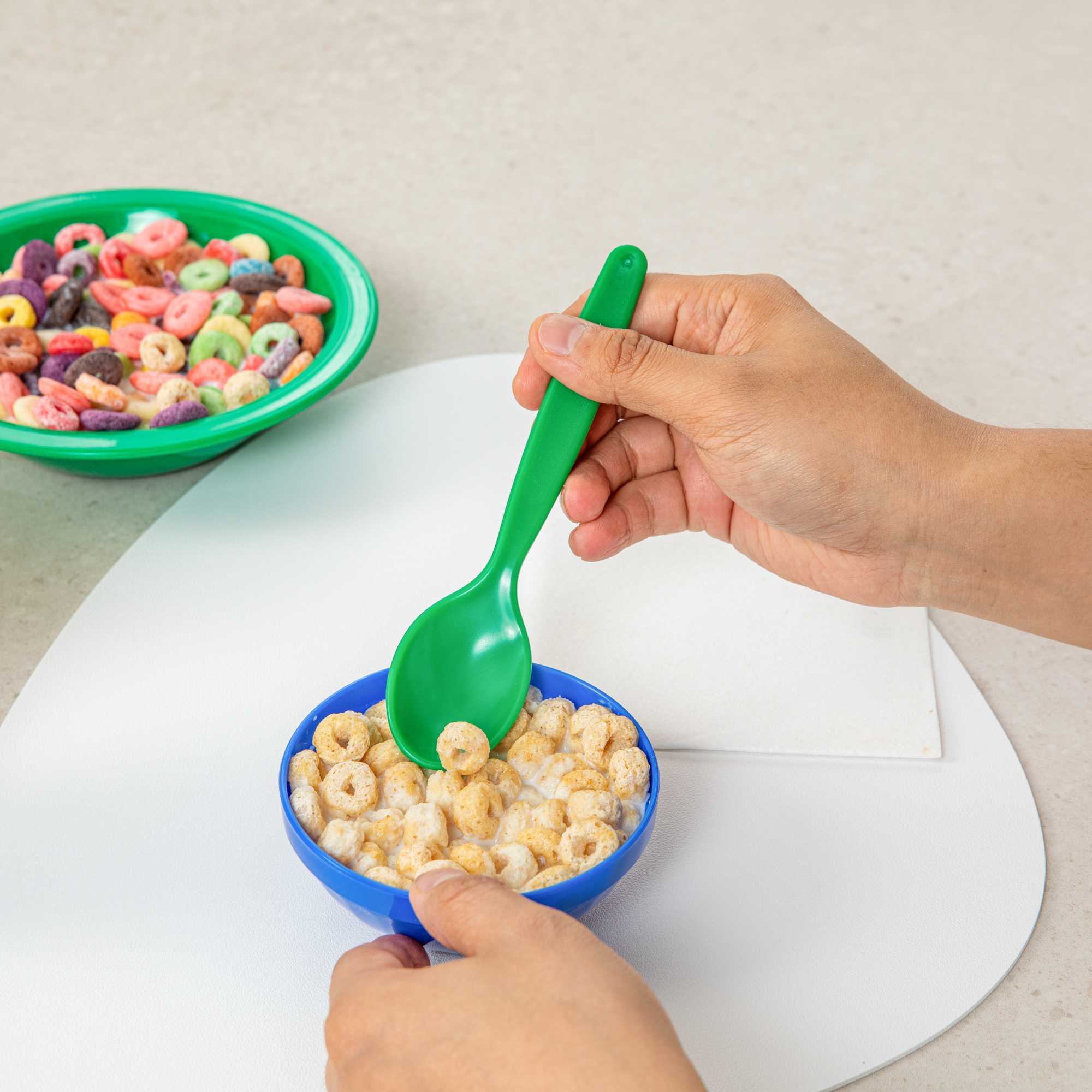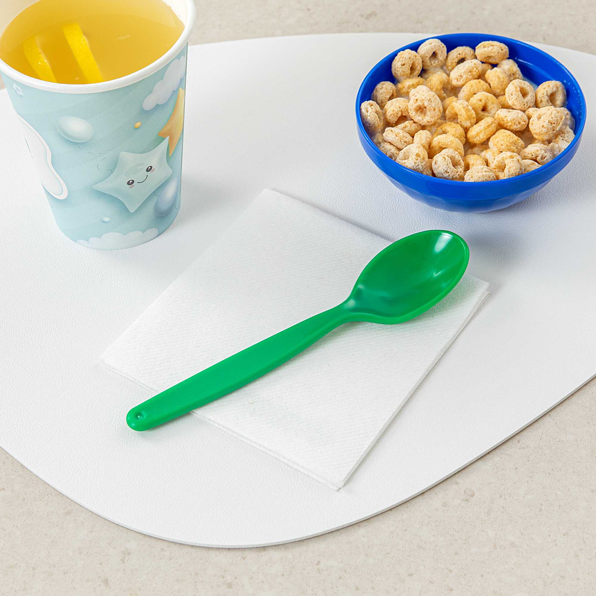Brighten meal times with vibrant green plastic spoons. The RW Kids Green Plastic Spoon adds a playful touch to children’s meals while being lighter than metal utensils, making it ideal for teaching young diners how to handle cutlery. Its soft, durable plastic construction prevents damage to developing teeth, ensuring safe use in busy foodservice environments. Designed with an ergonomic handle, this kids plastic spoon provides a comfortable grip, reducing strain on young hands. For efficient and eco-friendly clean-up, these spoons are recyclable, supporting sustainable practices in schools and daycare centers. At 6 3/4 inches in length, these dishwasher-safe spoons simplify cleaning processes, making them perfect for high-volume settings where hygiene is a priority. Enhance your meal service with this convenient spoon option, especially suited for children’s parties or family-friendly events. Sold in a 10 count box.