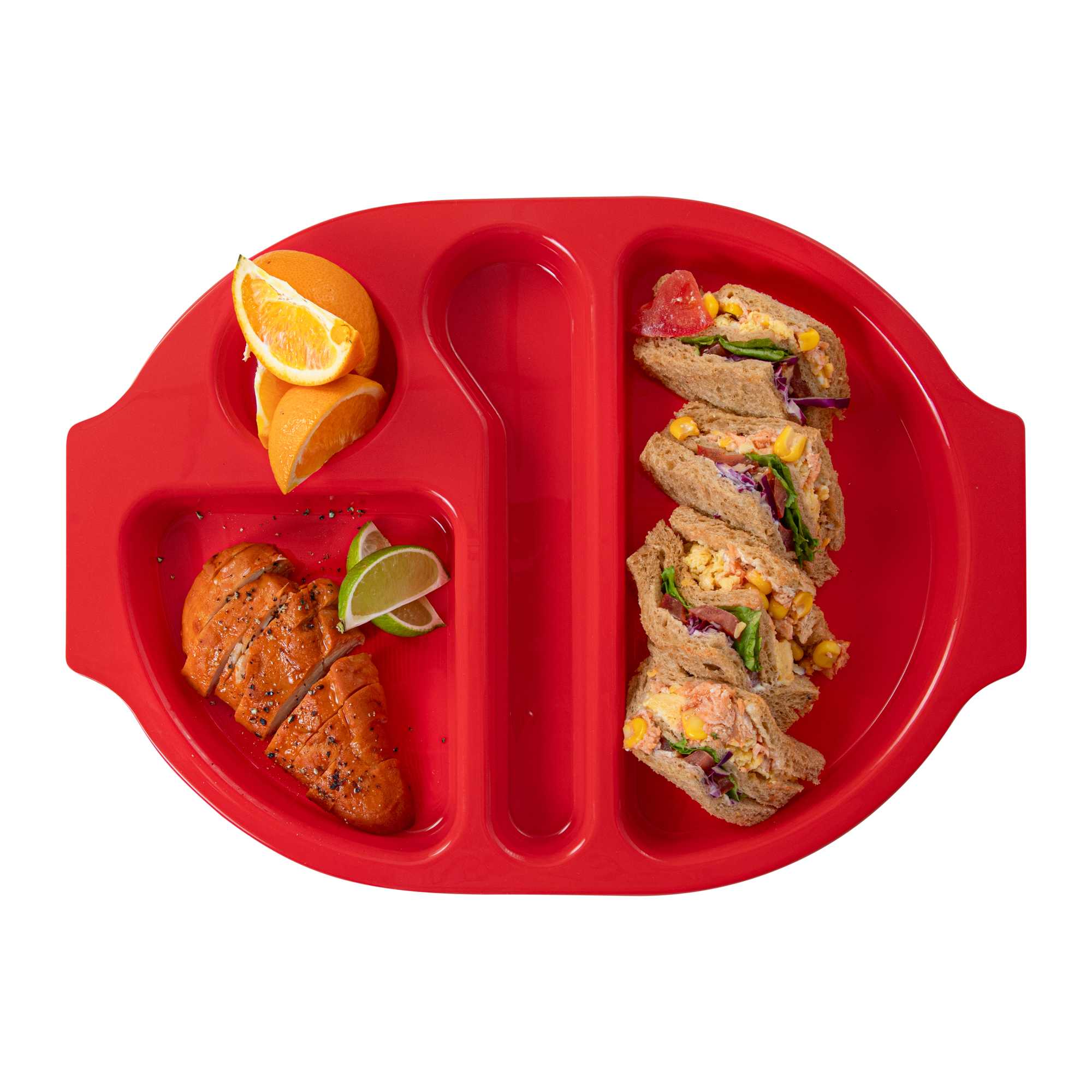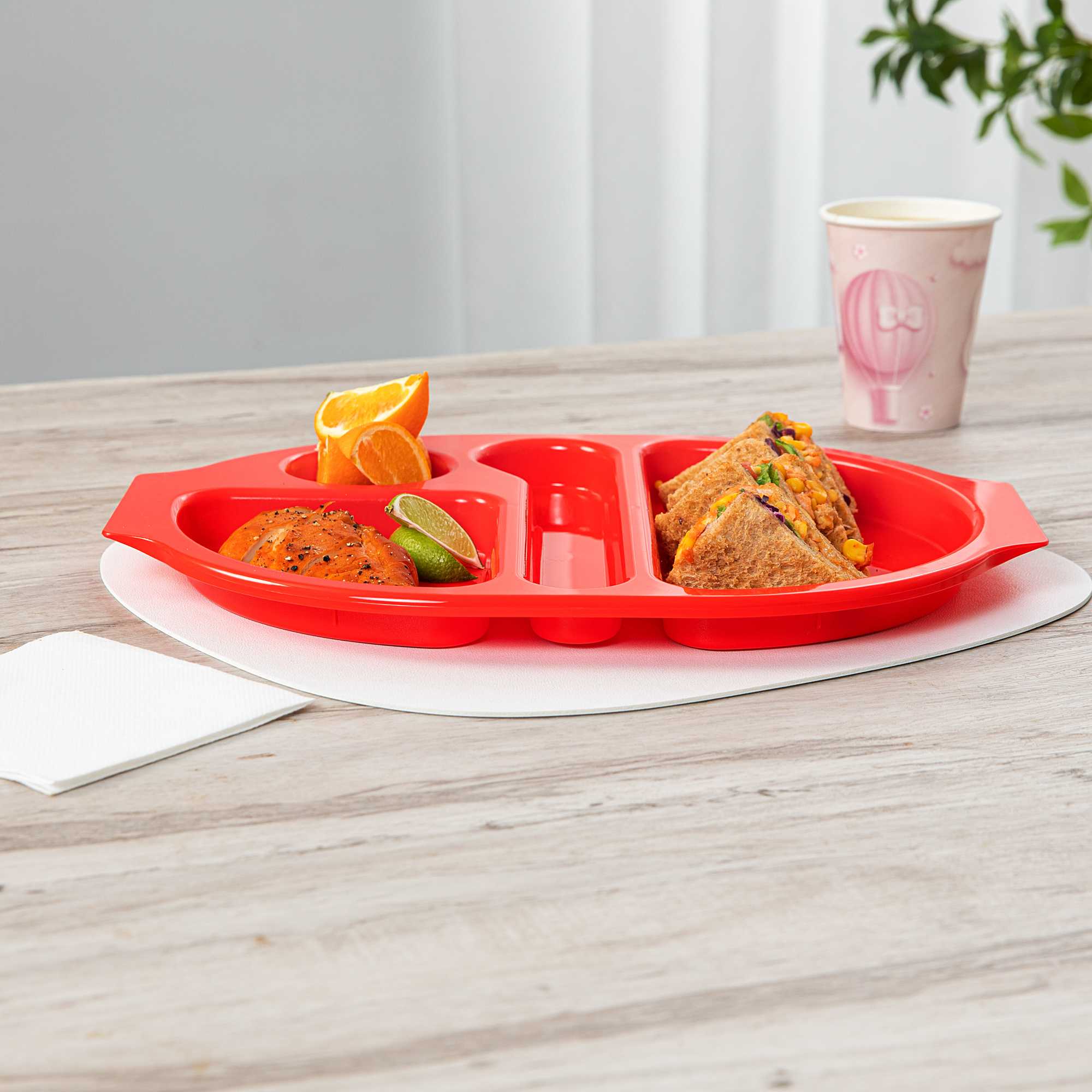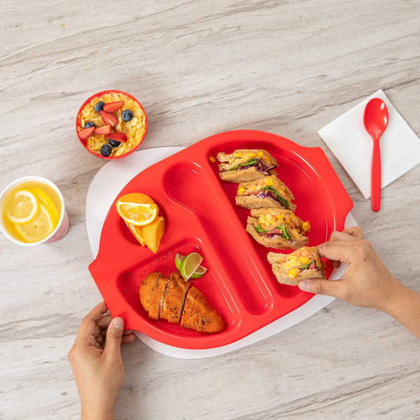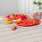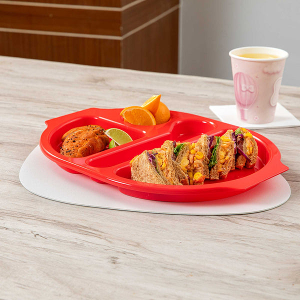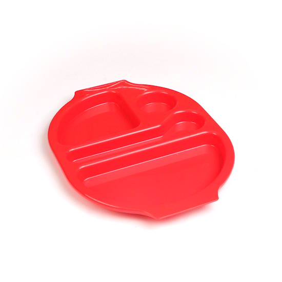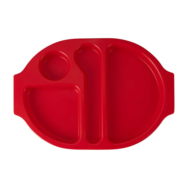 RED PLASTIC LUNCH TRAY - 4 COMPARTMENTS