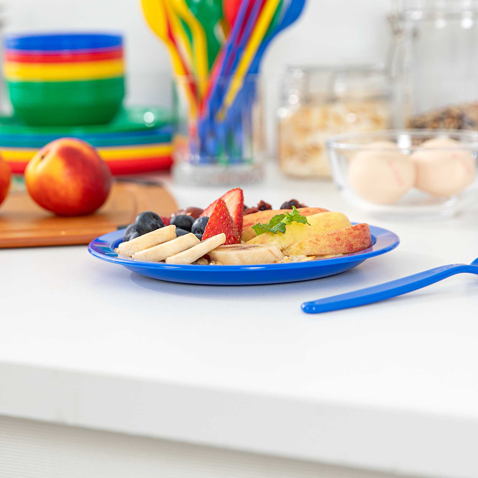 Enhance your dining service with versatile and resilient solutions. RW Kids Shatterproof Polycarbonate Plates withstand daily use in busy dining settings without cracking or warping, making them ideal for children's meals in restaurants and cafes. These polycarbonate plates feature a shatterproof design, reducing breakage in high-traffic areas, ensuring safety and durability. Measuring 6.77 inches in length, they are perfect for serving side dishes or child-sized portions. As break-resistant tableware, they are also microwave-safe and freezer-safe, allowing for quick meal reheating and versatile food storage, thus improving service speed. The stackable structure of these reusable plastic plates optimizes storage in busy kitchens, saving valuable space and maintaining organization. With their dishwasher-safe nature, these plates simplify cleaning processes, reducing time and labor costs. Sold in a 10 count box.