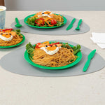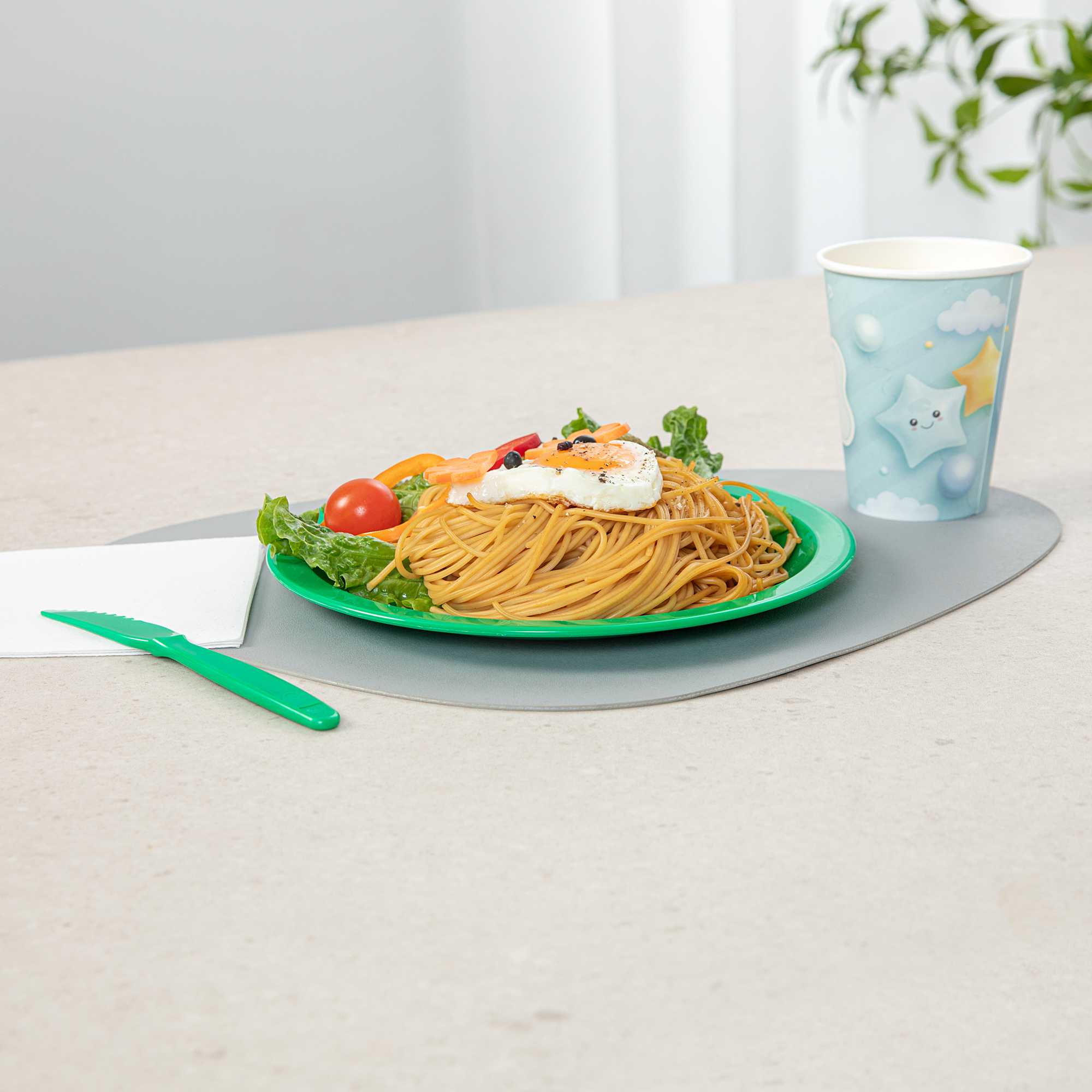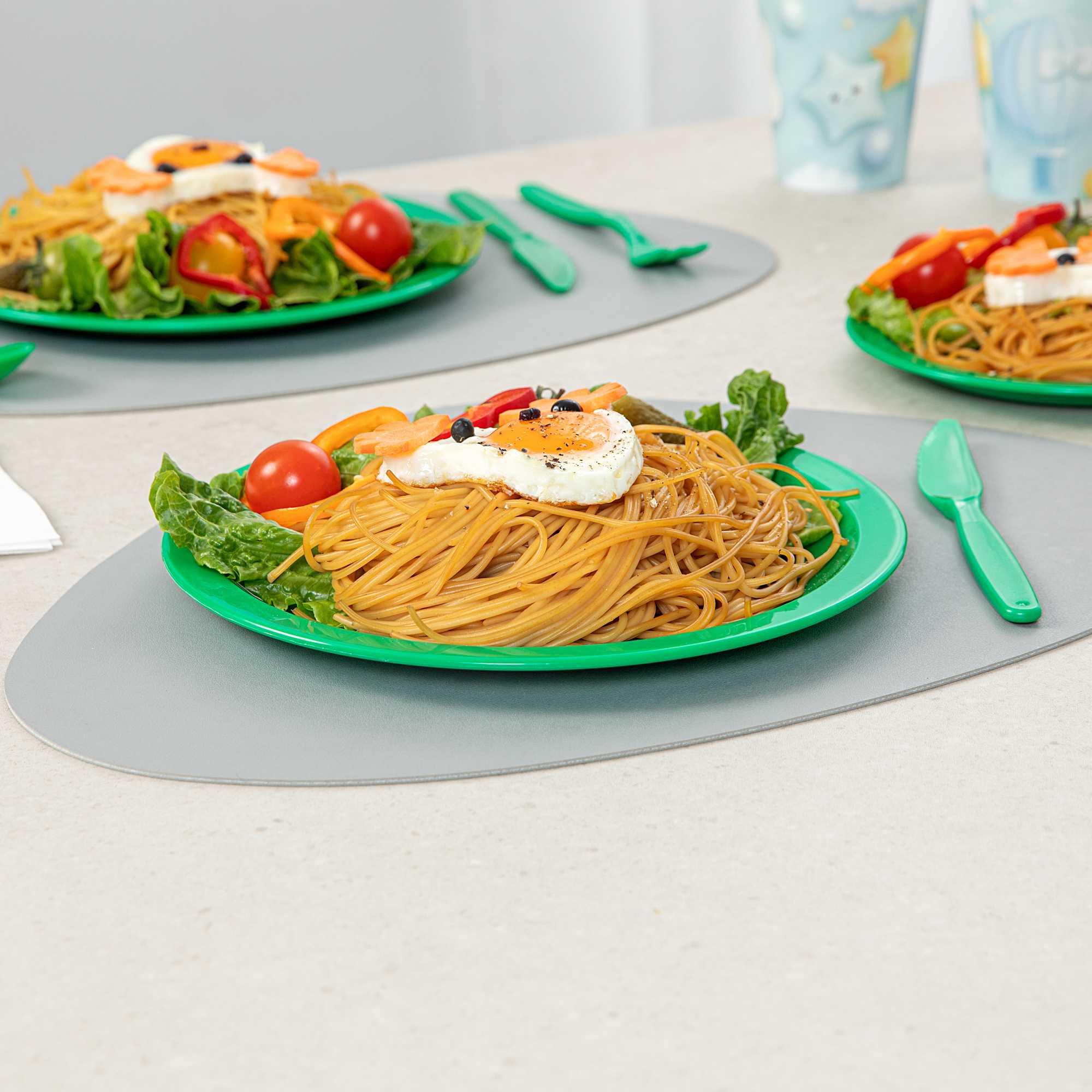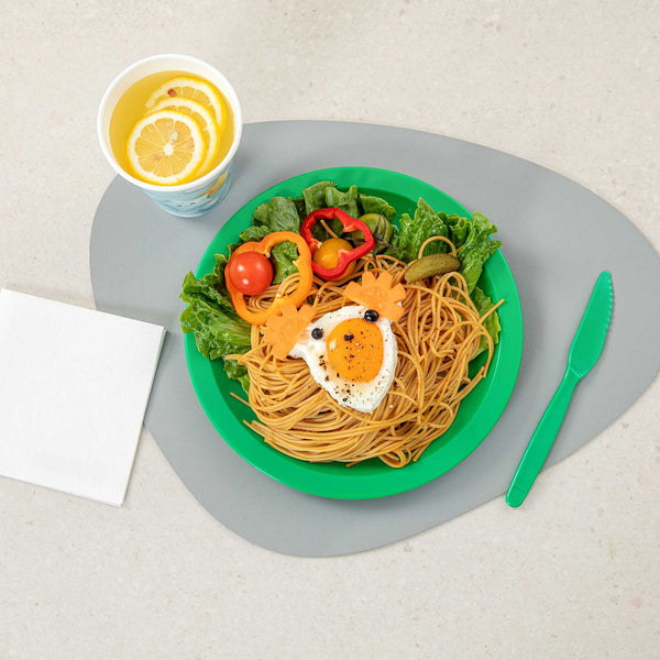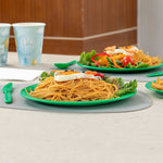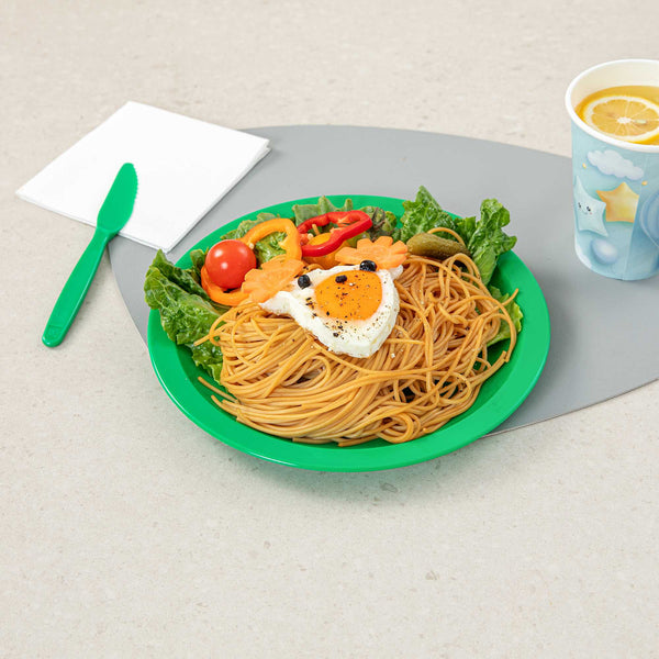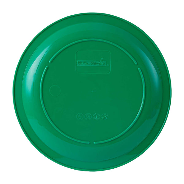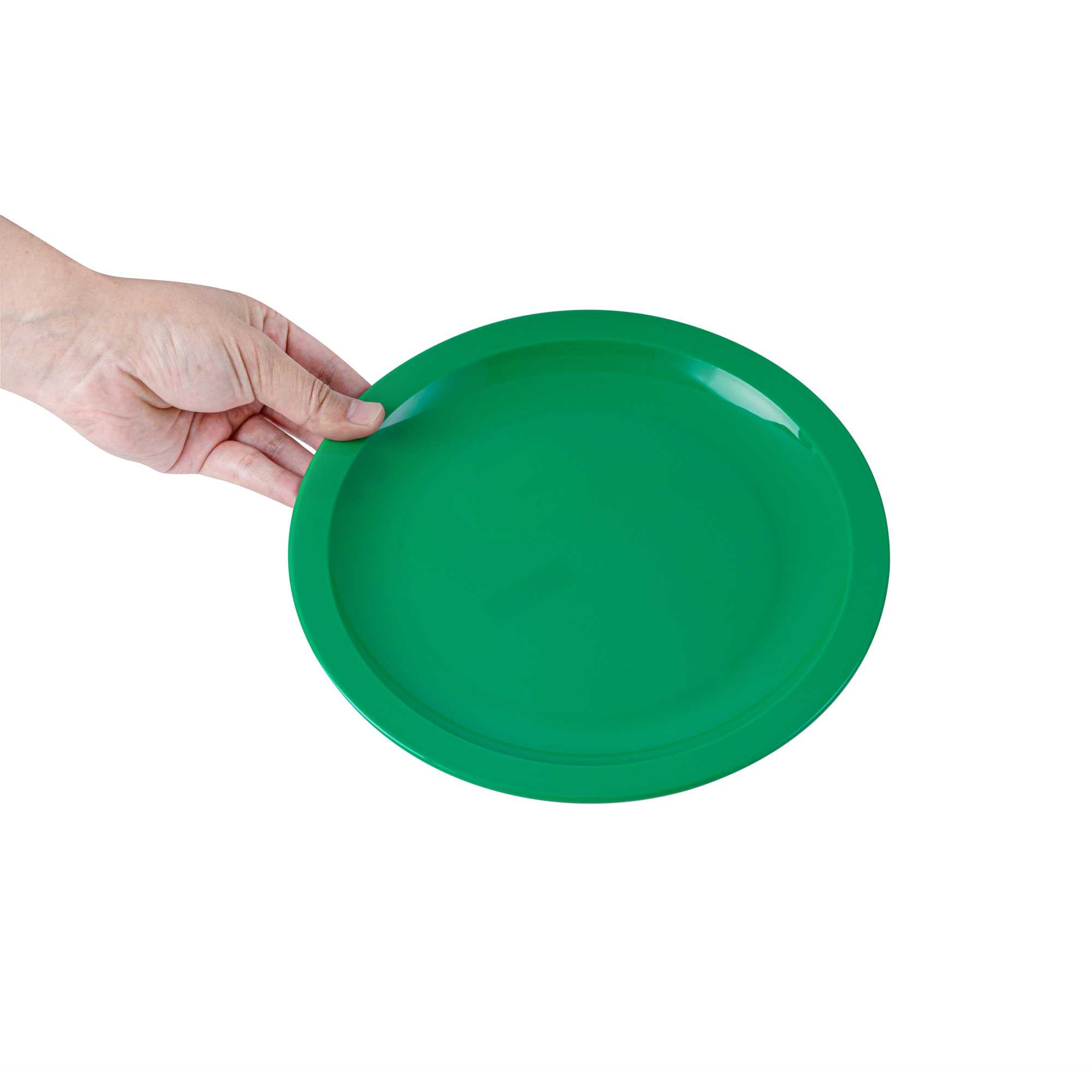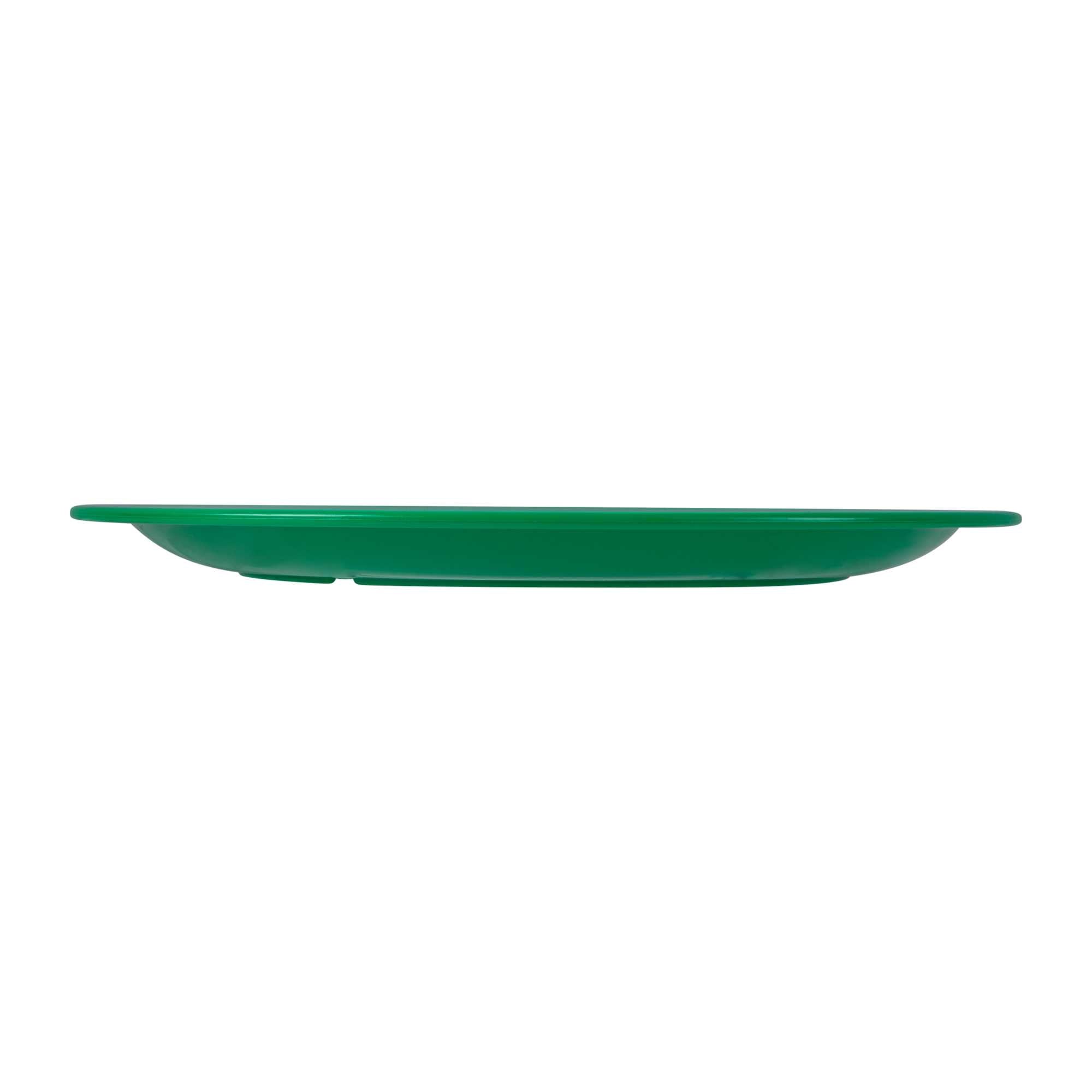 Ensure safe mealtime with vibrant, child-friendly tableware. The RW Kids Round Green Plastic Plate is a shatterproof plate that enhances safety in high-traffic areas, making it an ideal choice for bustling restaurants or school cafeterias. Crafted from durable plastic, this plate resists breakage and is perfect for serving up a fun dining experience for children. With a 9-inch diameter, it offers ample space for various meals, and its microwave and freezer-safe properties support diverse menu options, accommodating everything from hot lunches to frozen treats. Lightweight and stackable, these plates optimize kitchen storage and simplify handling, while also promoting independence among young diners. The reusable plastic plate's vibrant green color adds a lively touch to any kids' menu, ensuring it stands out in busy foodservice settings. Invest in these plates to streamline operations and provide a delightful dining experience. Sold in a 10 count box.