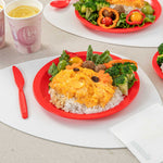 Enhance your foodservice efficiency with shatterproof tableware. The RW Kids Shatterproof Plastic Dinner Plate combines a robust plastic construction with a shatterproof design, ensuring safety in bustling environments. This red plastic plate not only resists breakage but also boosts tabletop appeal with its vibrant hue, making it ideal for family-friendly restaurants and lively gatherings. At a convenient 9-inch diameter, these plates accommodate a variety of dishes, from appetizers to main courses, optimizing your serving capabilities. Additionally, these polycarbonate plates are microwave-safe, allowing quick reheating of side dishes to streamline operations during peak hours. Their stackable nature further optimizes storage, perfect for kitchens with limited space. Sold in a 10 count box.