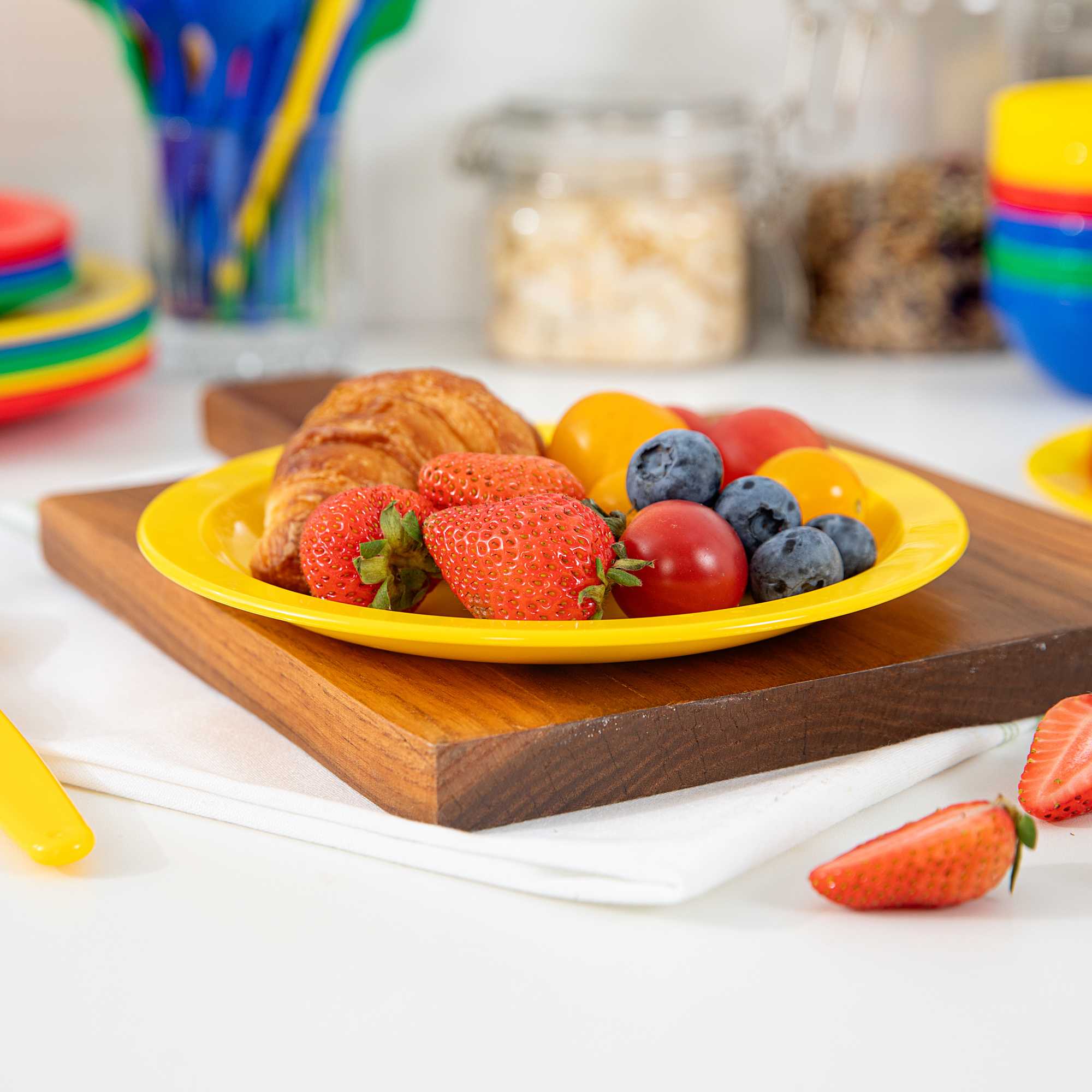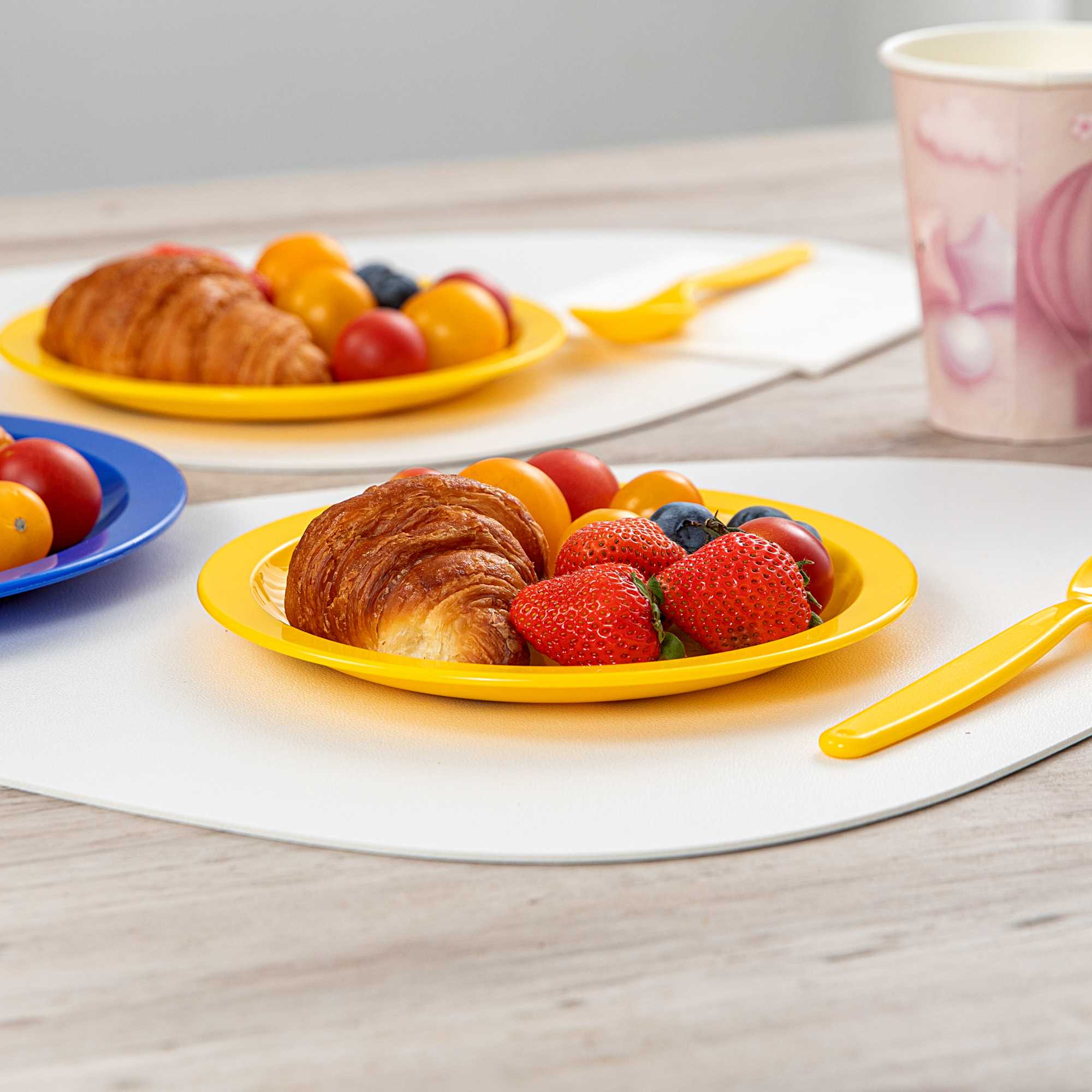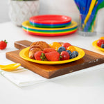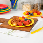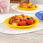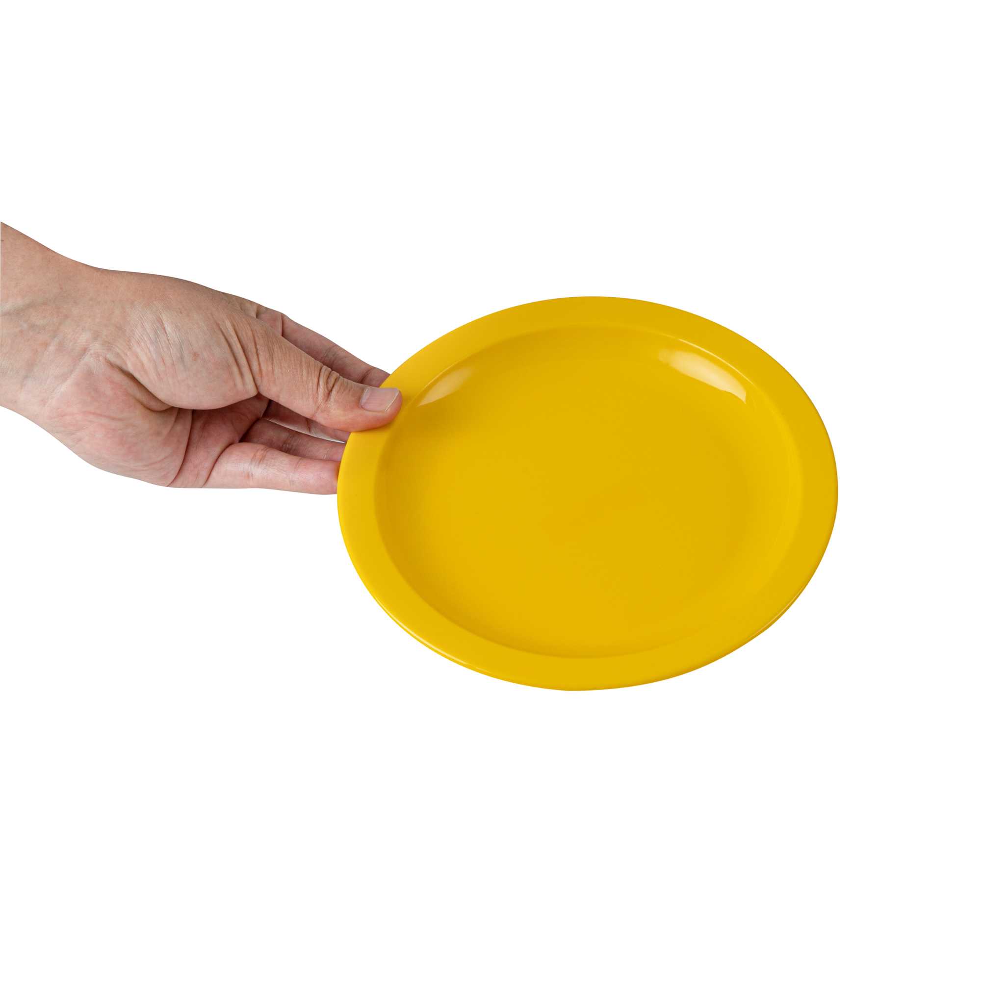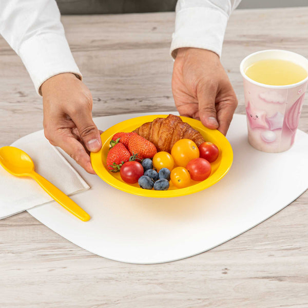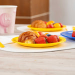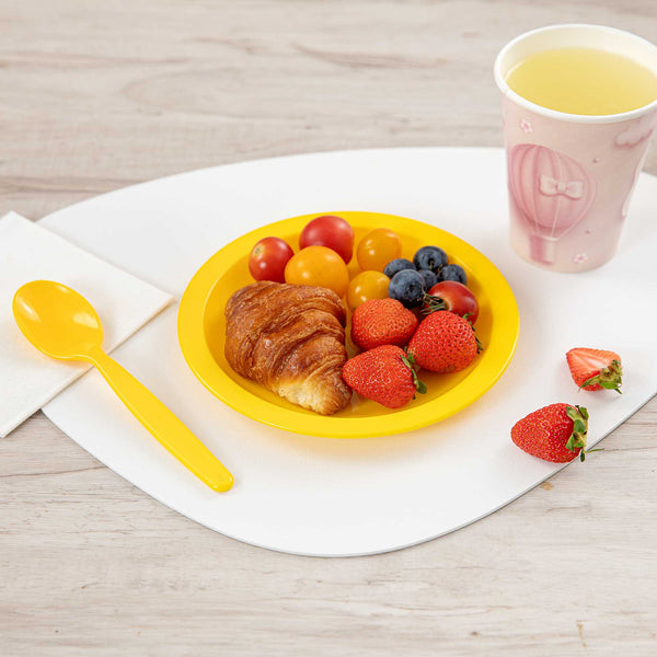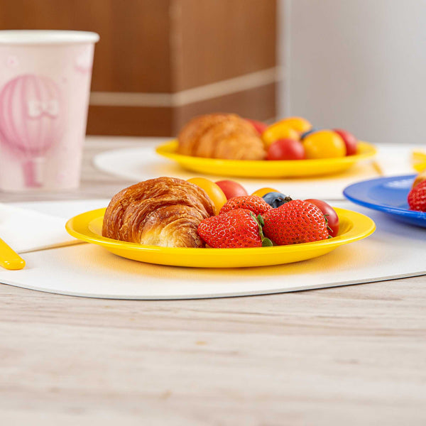 Enhance your service with vibrant and durable tableware. RW Kids Shatterproof Yellow Plastic Plates excel in busy environments with their shatterproof construction, ensuring these yellow plastic plates withstand daily use without cracking. Their microwave-safe design offers convenience, enabling quick reheating of dishes, perfect for bustling restaurants or daycare centers. Each plate measures 6 3/4 inches in diameter, the ideal size for serving children's portions effectively, reducing food waste, and ensuring proper meal sizes. The stackable feature of these kids plates facilitates efficient storage, saving valuable space in compact kitchens and serving areas. Made from reliable plastic, these plates are lightweight, allowing children to handle them independently, fostering a sense of autonomy during meals. Invest in these versatile shatterproof plates to streamline your foodservice operations. Sold in a 10 count box.