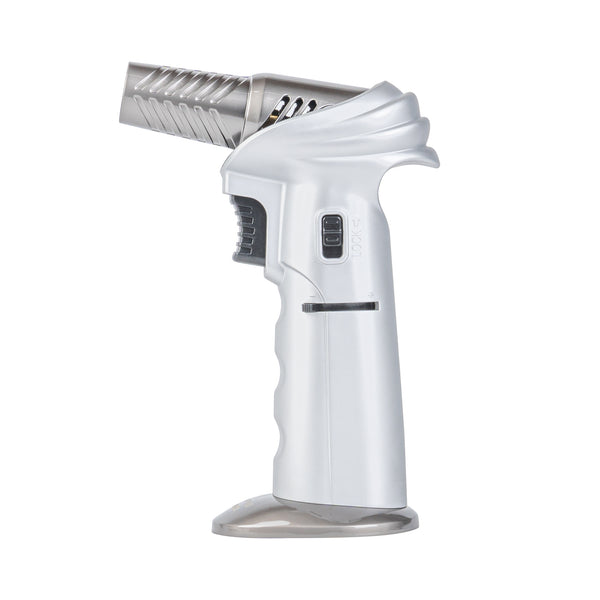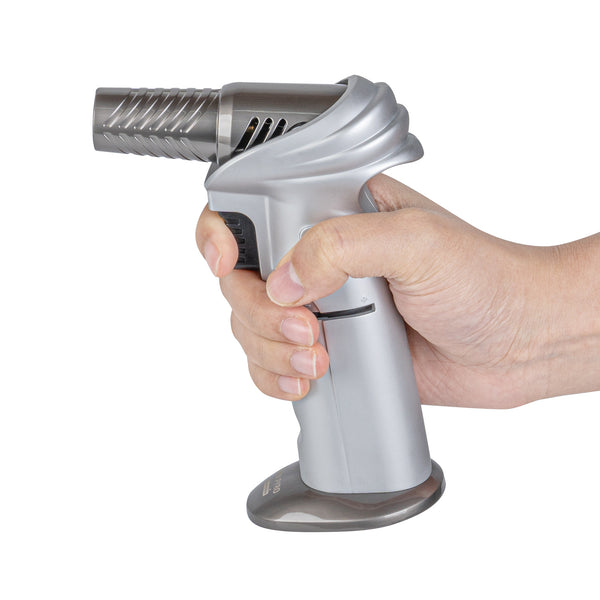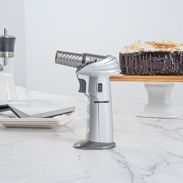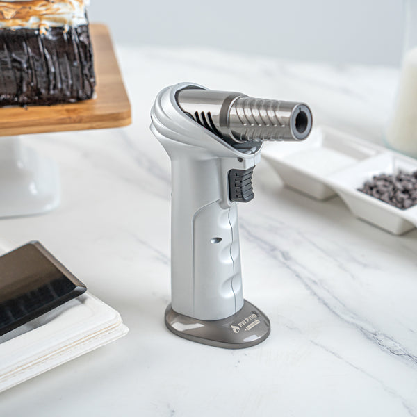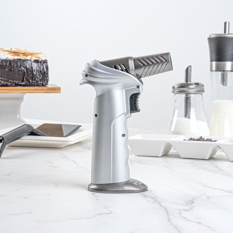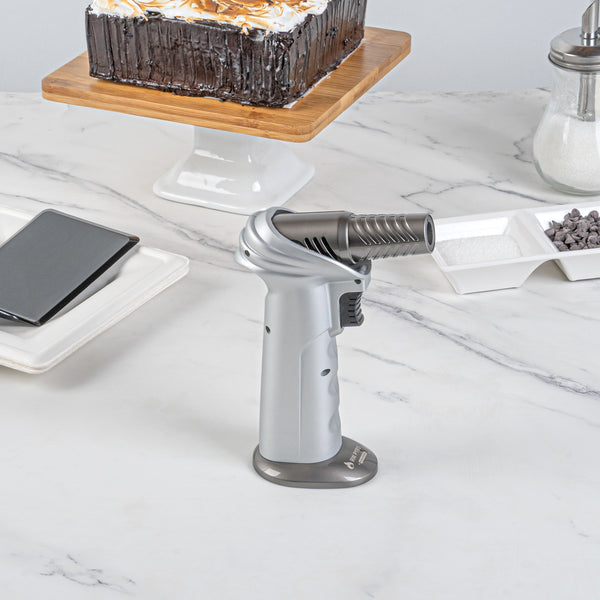SILVER BUTANE KITCHEN TORCH - ADJUSTABLE DIAL, ROTATING ANGLE