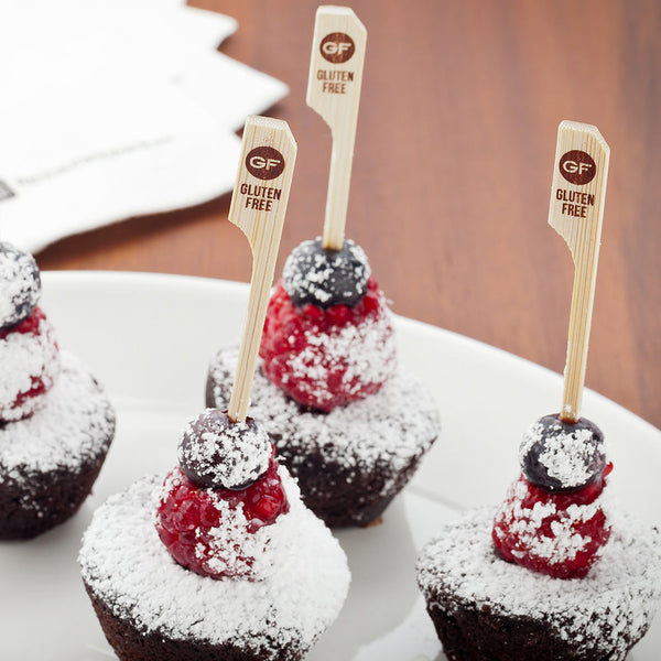 Indicate which dishes do not contain gluten with our RW Smart Natural Bamboo Paddle Skewers / Food Markers. These food marking skewers have a paddle head design that displays an easy-to-read “GF” symbol and a “GLUTEN FREE” label to clearly indicate which of your tasty treats are safe for consumption by guests with gluten allergies and gluten-free dietary preferences. Constructed from nature-friendly sustainable bamboo, these disposable appetizer skewers are naturally strong and sturdy, making them suitable for use with both hot and cold foods. These bamboo skewers have a splinter-free design with a smooth surface to avoid any potential wood-chipping accidents while preparing or eating. For a sustainable cleanup, these bamboo decorative picks are biodegradable and commercially compostable. These food picks have sharp tips to easily pierce through firm or soft food items without any compromise of the ingredients integrity. Each gluten-free food maker measures 4 inches long by 0.25 inches wide. Shipped in a 1,000 count box.