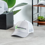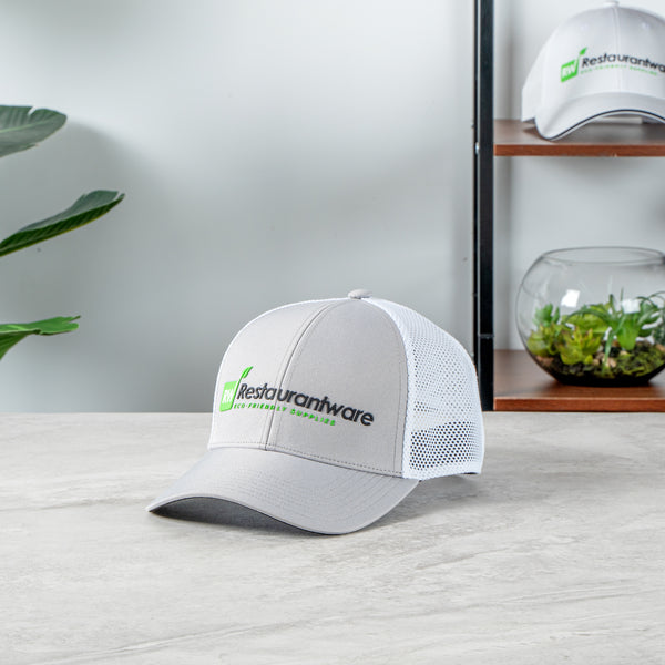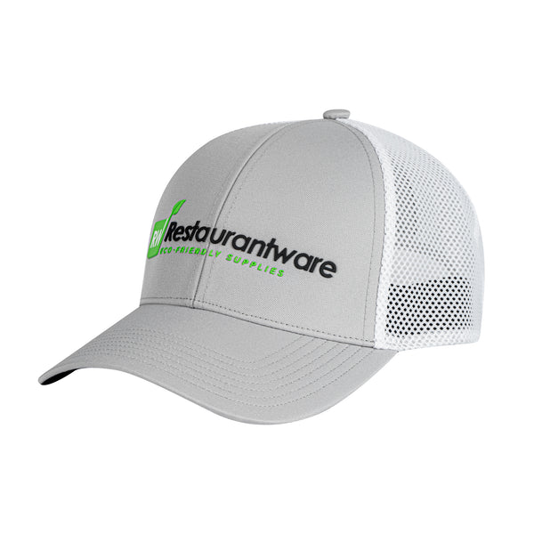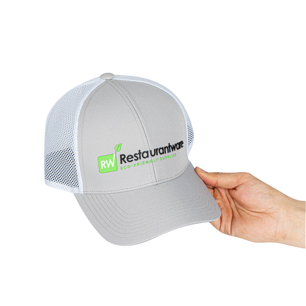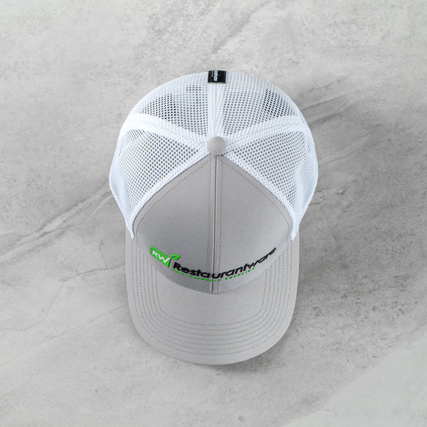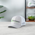 GRAY AND WHITE TRUCKER SNAPBACK HAT