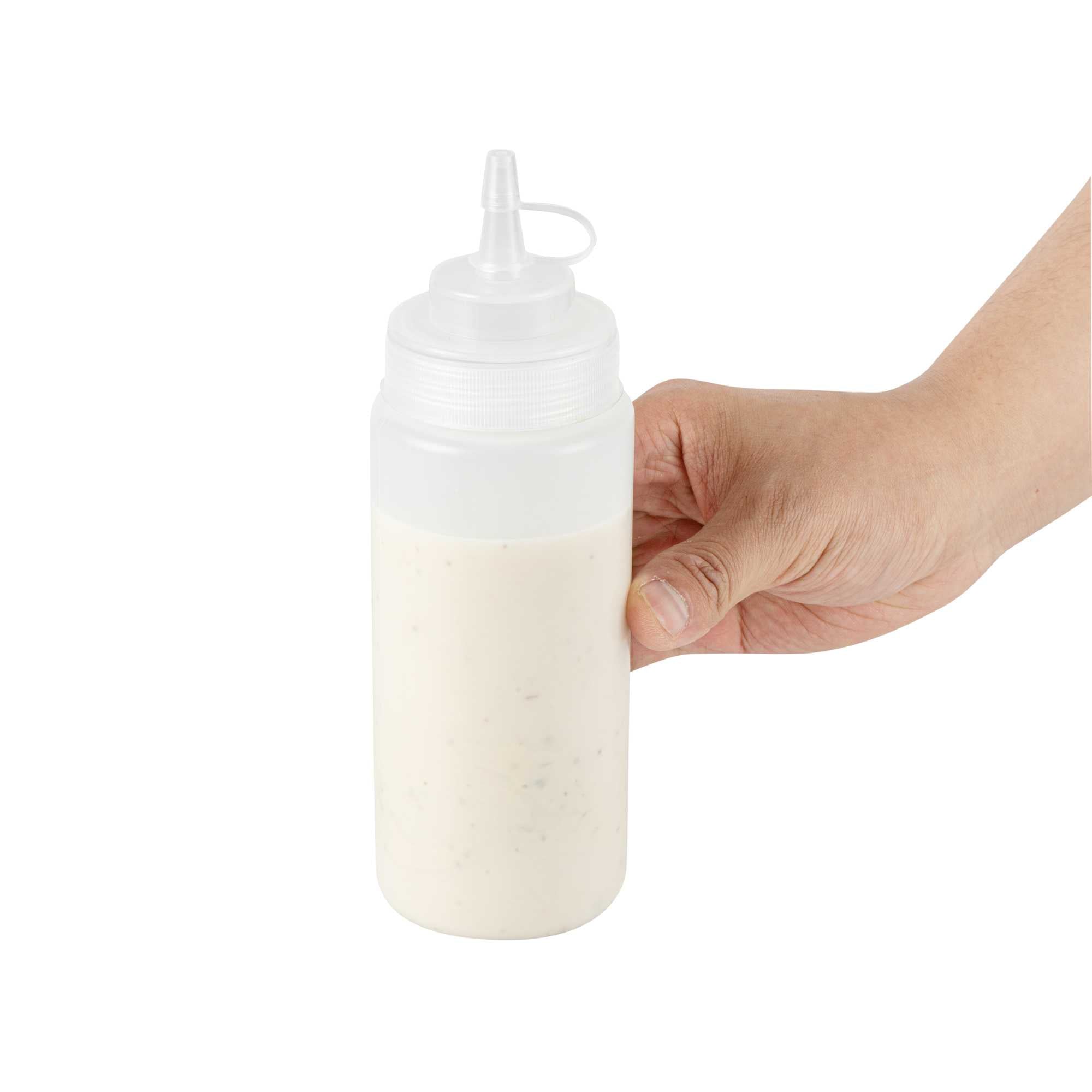 Optimize your kitchen efficiency with our Sauce Tek 16-ounce Clear Plastic Squeeze Bottle, designed to conveniently store and dispense your favorite condiments. This squeeze dispenser is crafted from food-safe plastic, ensuring that your sauces remain fresh and uncontaminated. Equipped with an included cap, this condiment dispenser prevents leaks and keeps contents perfectly preserved. The wide mouth squeeze bottle design facilitates effortless refilling and cleaning, making it an ideal choice for busy foodservice environments. Showcasing a clear finish, this refillable squeeze bottle allows the vibrant colors of your sauces to shine through, enhancing your kitchen's presentation. With a generous 16-ounce capacity, this sauce bottle accommodates a substantial amount of liquid, measuring 2.56 inches in diameter by 7.87 inches in height for a compact yet capacious solution. Sold in a 1 count box.