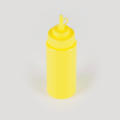 16 OZ YELLOW PLASTIC SQUEEZE BOTTLE - WITH CAP, WIDE MOUTH