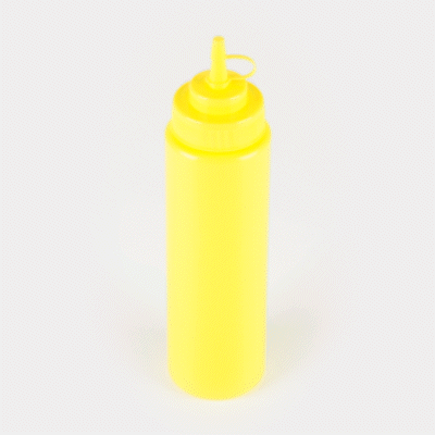 24 OZ YELLOW PLASTIC SQUEEZE BOTTLE - WITH CAP, WIDE MOUTH