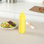 Introducing our Sauce Tek 32-ounce Yellow Plastic Squeeze Bottle, the ultimate solution for storing and dispensing condiments efficiently. This squeeze dispenser is crafted from food-safe plastic, ensuring your sauces and dressings remain fresh and uncontaminated. Equipped with an included cap, this condiment dispenser prevents leaks, maintaining the integrity of your kitchen or dining space. The wide mouth squeeze bottle design allows for easy refilling and hassle-free cleaning, saving you valuable time during busy service hours. With its bright yellow finish, this refillable squeeze bottle is easily recognized as a mustard container, preventing mix-ups with other condiments. Measuring 3.07 inches in diameter by 11.42 inches tall, this sauce bottle holds an impressive capacity of 32 ounces, providing ample space for your favorite dressings or condiments. Sold in a 1 count box.