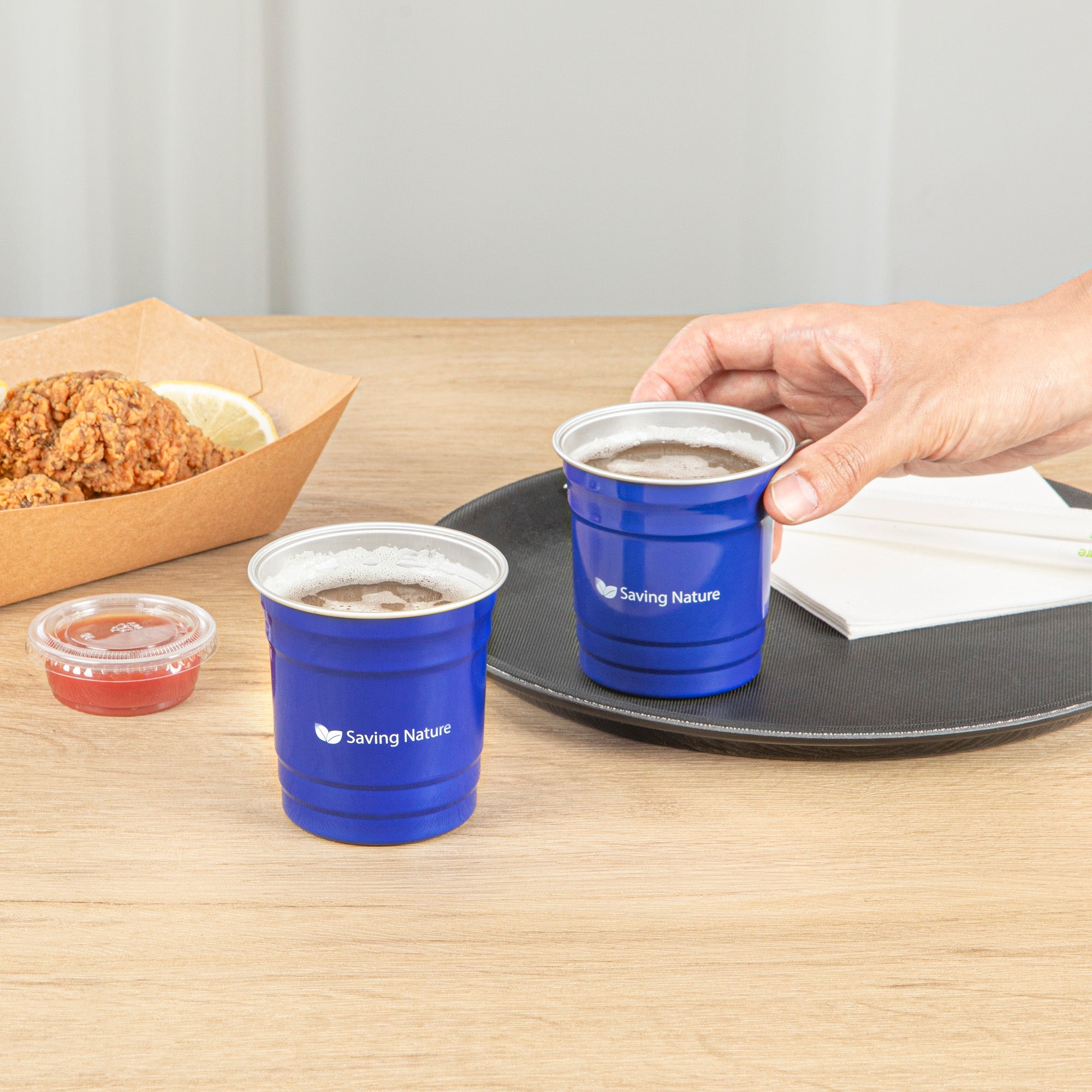 Enhance beverage service while reducing waste with our Saving Nature Aluminum Tumbler. This reusable aluminum cup is crafted from 100% recyclable aluminum, effectively eliminating the need for single-use plastics in your establishment. Its stain-resistant design ensures that each aluminum tumbler remains spotless and gleaming after dishwashing, simplifying maintenance for busy staff. With dimensions of 3.465 inches in length and 3.071 inches in height, these 10 oz tumblers are easy to stack and transport, making them ideal for efficient beverage service on the go. Perfect for serving water, soda, or even as an aluminum beer tumbler, its lightweight yet durable structure guarantees long-lasting use. Transition to a more sustainable operation without compromising on style or functionality. Each order includes 10 Saving Nature Aluminum Tumbler.