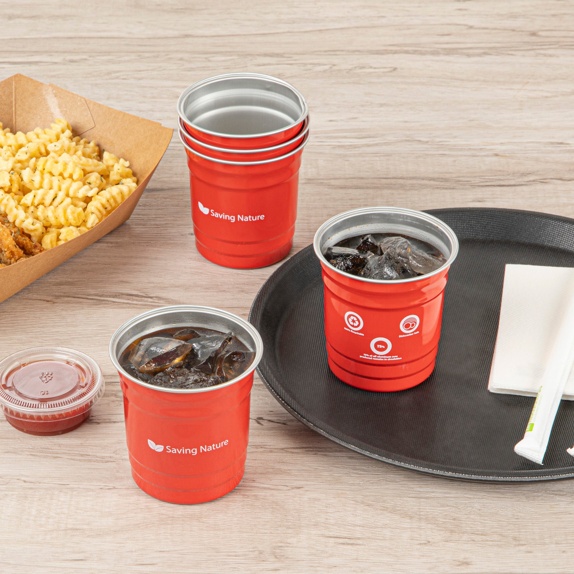 Enhance sustainability in your beverage service with recyclable drinkware. The Saving Nature Recyclable Aluminum Beer Cup combines a lightweight design with a 3.465-inch diameter, making it ideal for any fast-paced foodservice environment. This aluminum beer cup is not only reusable but also stain-resistant, ensuring a spotless, gleaming appearance wash after wash. Its lightweight construction simplifies stacking and transportation, offering ease for busy staff needing stackable solutions. Cold food friendliness makes this reusable aluminum cup perfect for serving chilled beverages like water or soda on the go, eliminating the need for single-use plastics. Made with recyclable aluminum, these 10 oz cups support eco-friendly practices without compromising on durability. Choose these stackable aluminum cups to streamline your operations and highlight your commitment to sustainability. Each order includes 10 Saving Nature Recyclable Aluminum Beer Cups.