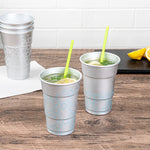 Enhance your beverage presentation with our Saving Nature 16-ounce Aluminum Color Changing Drinking Cups. When poured with cold water, these drinking cups showcase a captivating look as they change color, revealing vibrant and dynamic patterns that enhance the visual appeal. Crafted from aluminum, these cups are durable and sturdy, ideal for holding various beverages, including water, soda, and more. These disposable cups can be discarded after use for an easy cleaning experience. For eco-conscious establishments, these aluminum solo cups are recyclable and offer a sustainable alternative to traditional plastic cups. The round shape of these iced coffee cups provides a comfortable grip and easy handling, making them perfect for any event or celebration. With a rolled rim, these cups offer a smooth and comfortable drinking experience. Designed to be dishwasher-safe, these drinking cups can be reused effortlessly. Measuring 3.5 inches in diameter by 5.12 inches in height, these aluminum cups have a capacity of 16 ounces. Sold in a 4 count box.