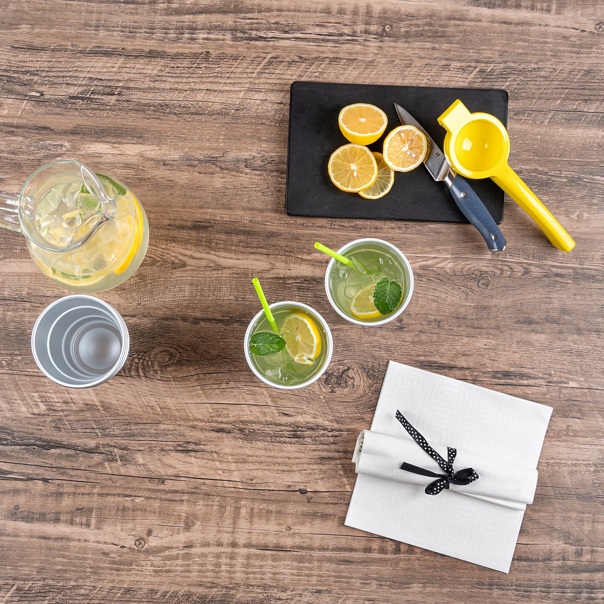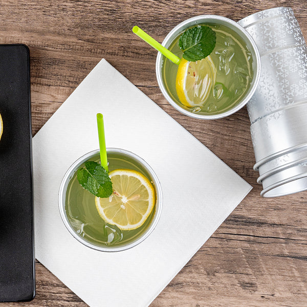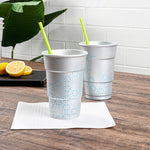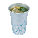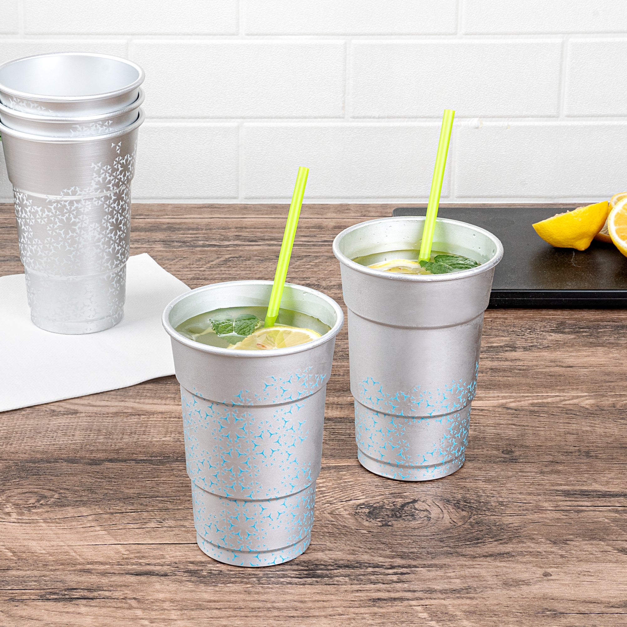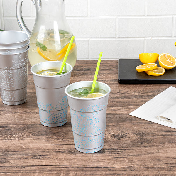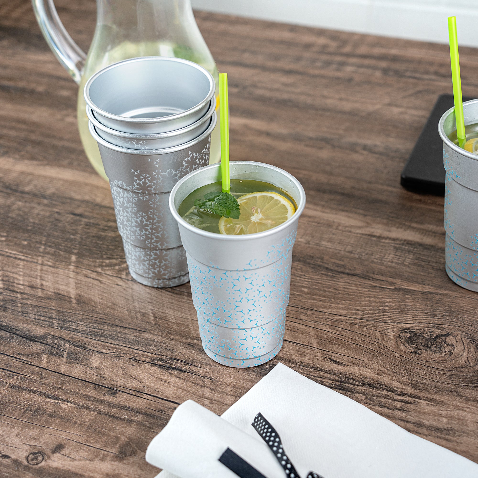 Enhance your beverage presentation with our Saving Nature 16-ounce Aluminum Color Changing Drinking Cups. When poured with cold water, these drinking cups showcase a captivating look as they change color, revealing vibrant and dynamic patterns that enhance the visual appeal. Crafted from aluminum, these cups are durable and sturdy, ideal for holding various beverages, including water, soda, and more. These disposable cups can be discarded after use for an easy cleaning experience. For eco-conscious establishments, these aluminum solo cups are recyclable and offer a sustainable alternative to traditional plastic cups. The round shape of these iced coffee cups provides a comfortable grip and easy handling, making them perfect for any event or celebration. With a rolled rim, these cups offer a smooth and comfortable drinking experience. Designed to be dishwasher-safe, these drinking cups can be reused effortlessly. Measuring 3.5 inches in diameter by 5.12 inches in height, these aluminum cups have a capacity of 16 ounces. Sold in a 48 count box.