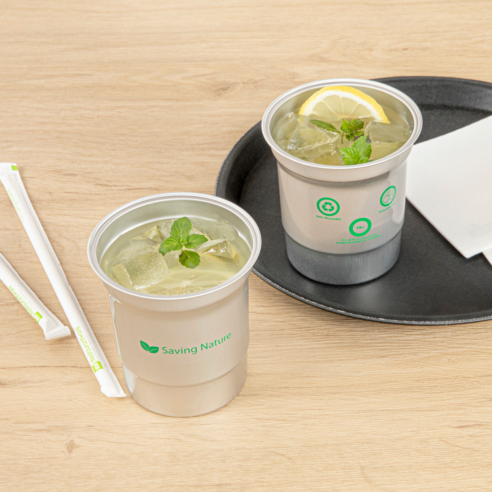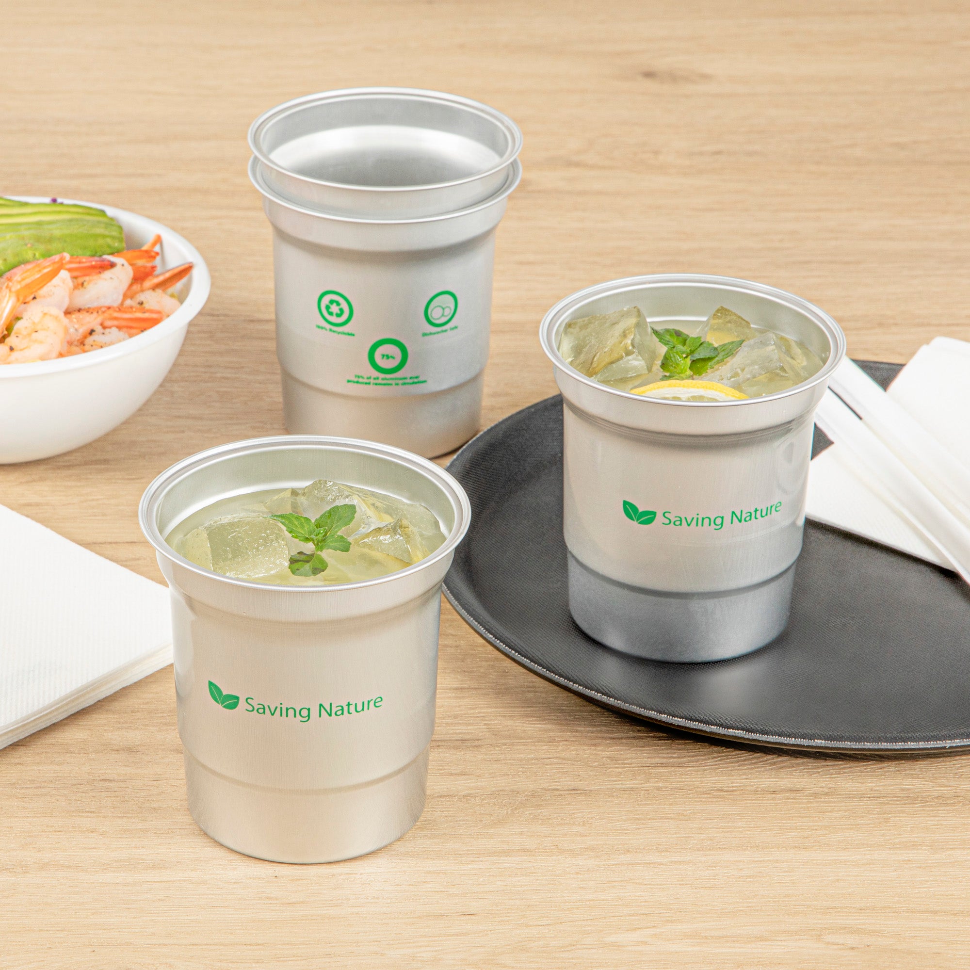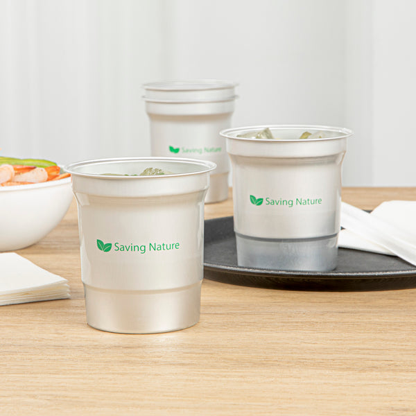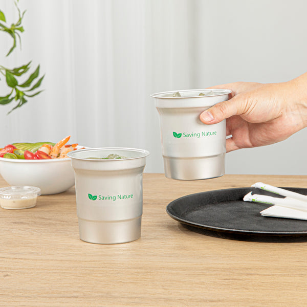 Elevate your beverage service with sustainable flair. The Saving Nature Recyclable Aluminum Cup offers a lightweight, durable design that resists stains and emerges spotless from the dishwasher, making cleanup effortless for bustling establishments. This aluminum cup, measuring 3.858 inches in both length and width with a height of 4.055 inches, is perfect for serving a variety of cold drinks, from refreshing water to fizzy sodas. Designed as a reusable aluminum cup, it eliminates the need for single-use plastics, supporting eco-friendly practices in foodservice environments. The 16 oz aluminum tumbler is not only BPA-free and food-safe but also freezer-safe and hot food friendly, providing versatile serving options. Easy to stack and transport, this cup enhances operational efficiency and reduces storage space. Choose this eco-conscious solution to impress your guests and streamline your service. Each order includes 10 Saving Nature Recyclable Aluminum Cups.