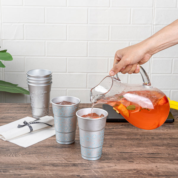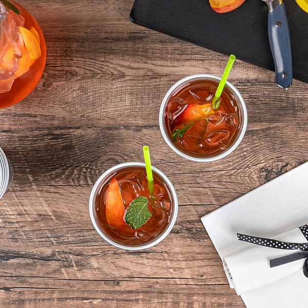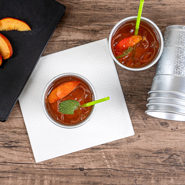Enhance your beverage service with a visually striking twist. Saving Nature Color-Changing Aluminum Cups transform any drink presentation with their captivating color-changing feature, creating an eye-catching visual effect that delights guests. Crafted from robust aluminum, these 3.5-inch by 5.5-inch metal cups are designed to keep your drinks refreshingly cool, making them perfect for serving chilled cocktails or sodas. Their cold food-friendly design ensures that beverages maintain their optimal freshness, while the freezer-safe capability allows for convenient make-ahead drink prep, ideal for busy service environments. The reusable cups are also recyclable, supporting sustainable practices in your establishment. Elevate your drinkware collection with these innovative and stylish solutions, perfect for any occasion. Each order includes 48 Saving Nature Color-Changing Aluminum Cups.