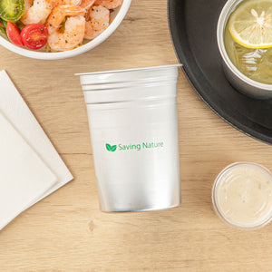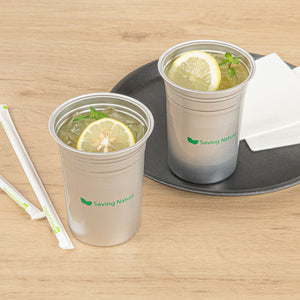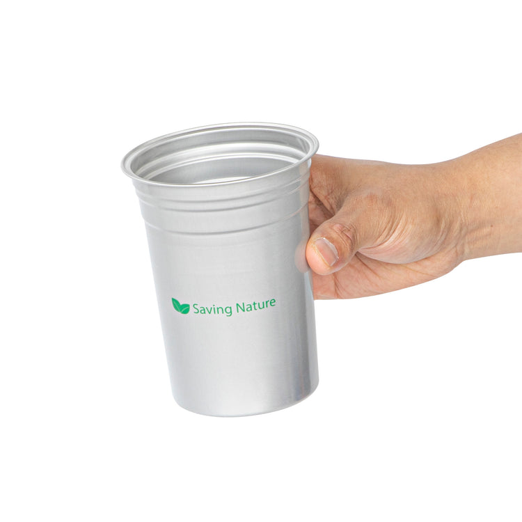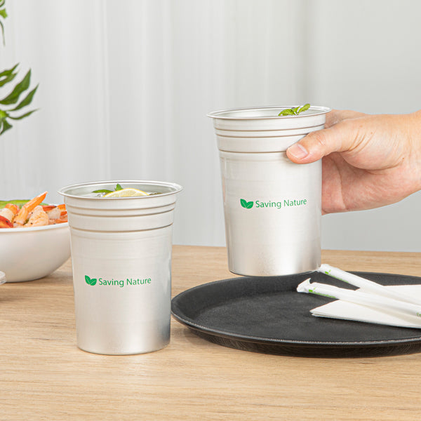 Enhance your beverage service with eco-friendly sophistication. Saving Nature Recyclable Aluminum Cup offers a 20-ounce capacity and is crafted from 100% recyclable aluminum, reducing environmental impact and supporting your sustainability goals. This 20oz aluminum cup measures 3.9 inches in length, providing ample space for drinks while remaining easy to handle and transport in bustling foodservice environments. The lightweight, durable design of this aluminum beer tumbler ensures ease of use, making it ideal for serving water, soda, or any other beverage on the go. Featuring a stain-resistant, dishwasher-safe finish, these reusable aluminum drink cups maintain a lasting shine, ensuring they emerge spotless and gleaming for each use. Perfect for cold or hot drinks, these versatile cups are also freezer-safe, adding functionality to your kitchen toolkit. Each order includes 10 Saving Nature Recyclable Aluminum Cup.