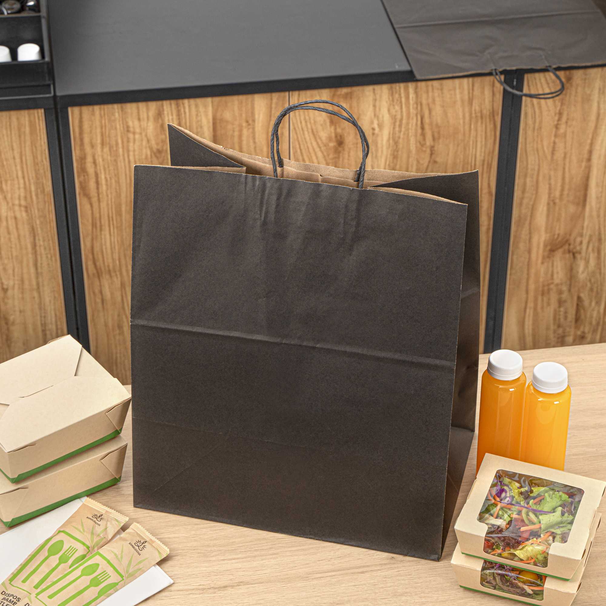 BLACK PAPER LARGE RETAIL BAG - WITH HANDLES