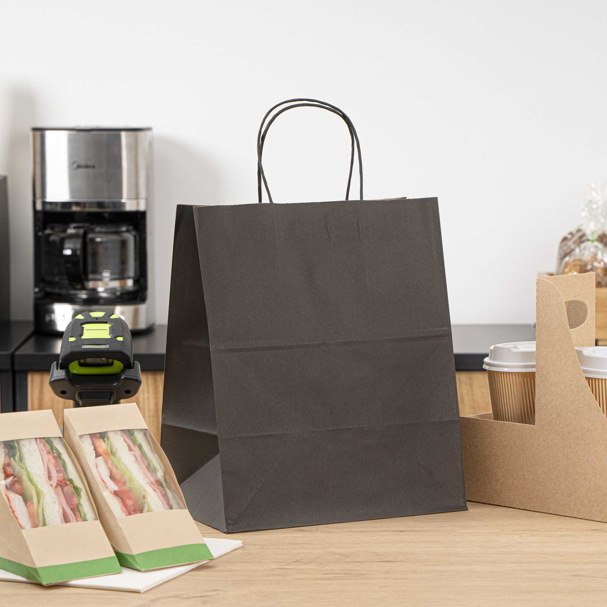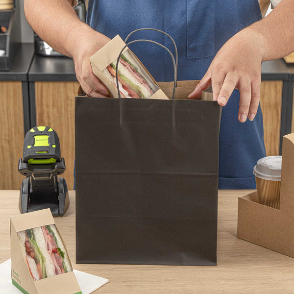 BLACK PAPER MEDIUM RETAIL BAG - WITH HANDLES