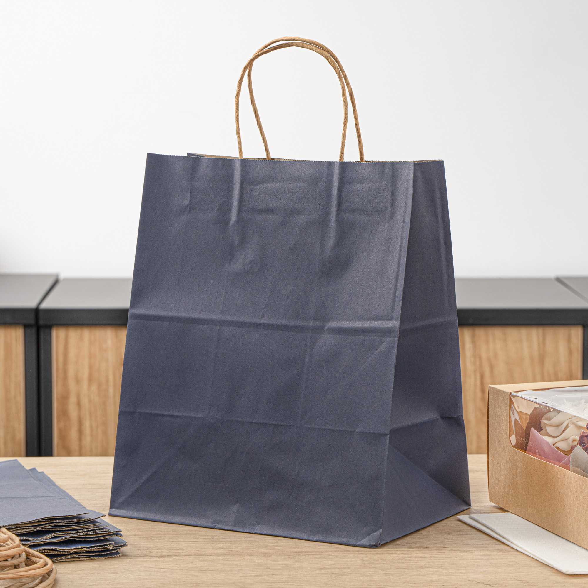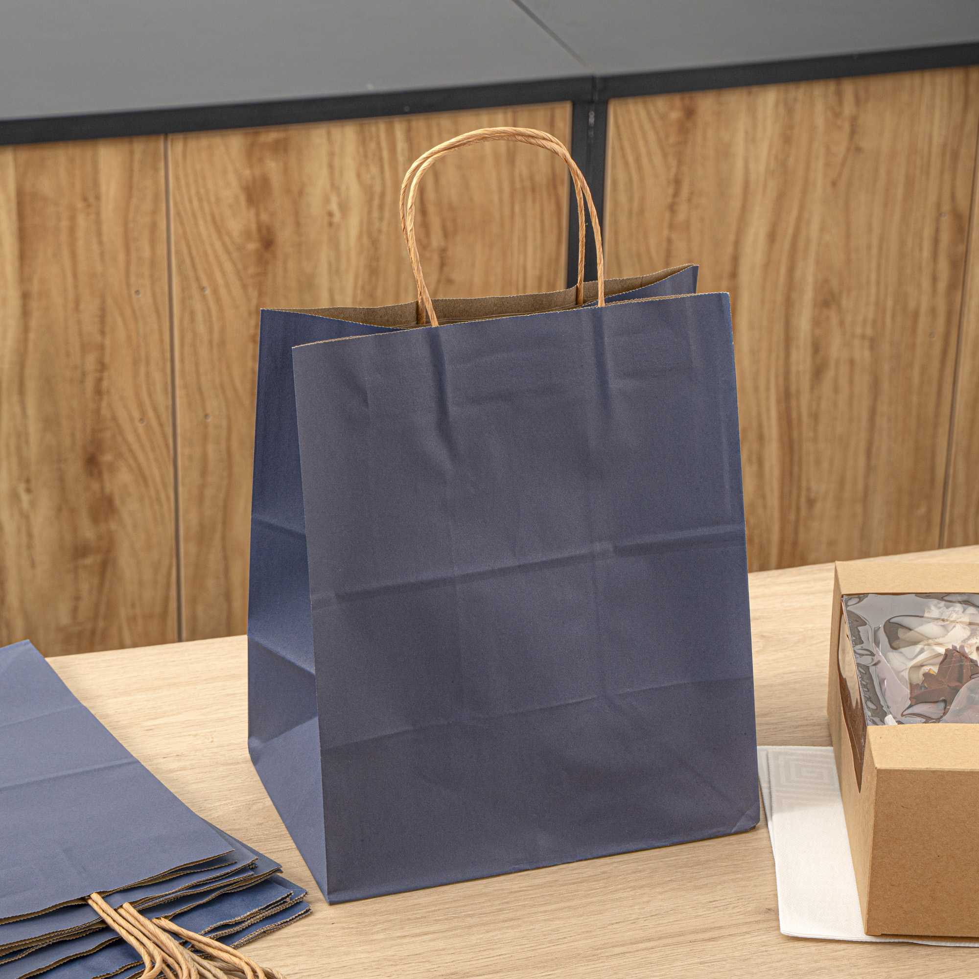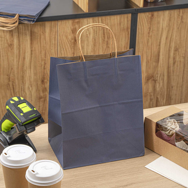 DARK BLUE PAPER MEDIUM RETAIL BAG - WITH HANDLES