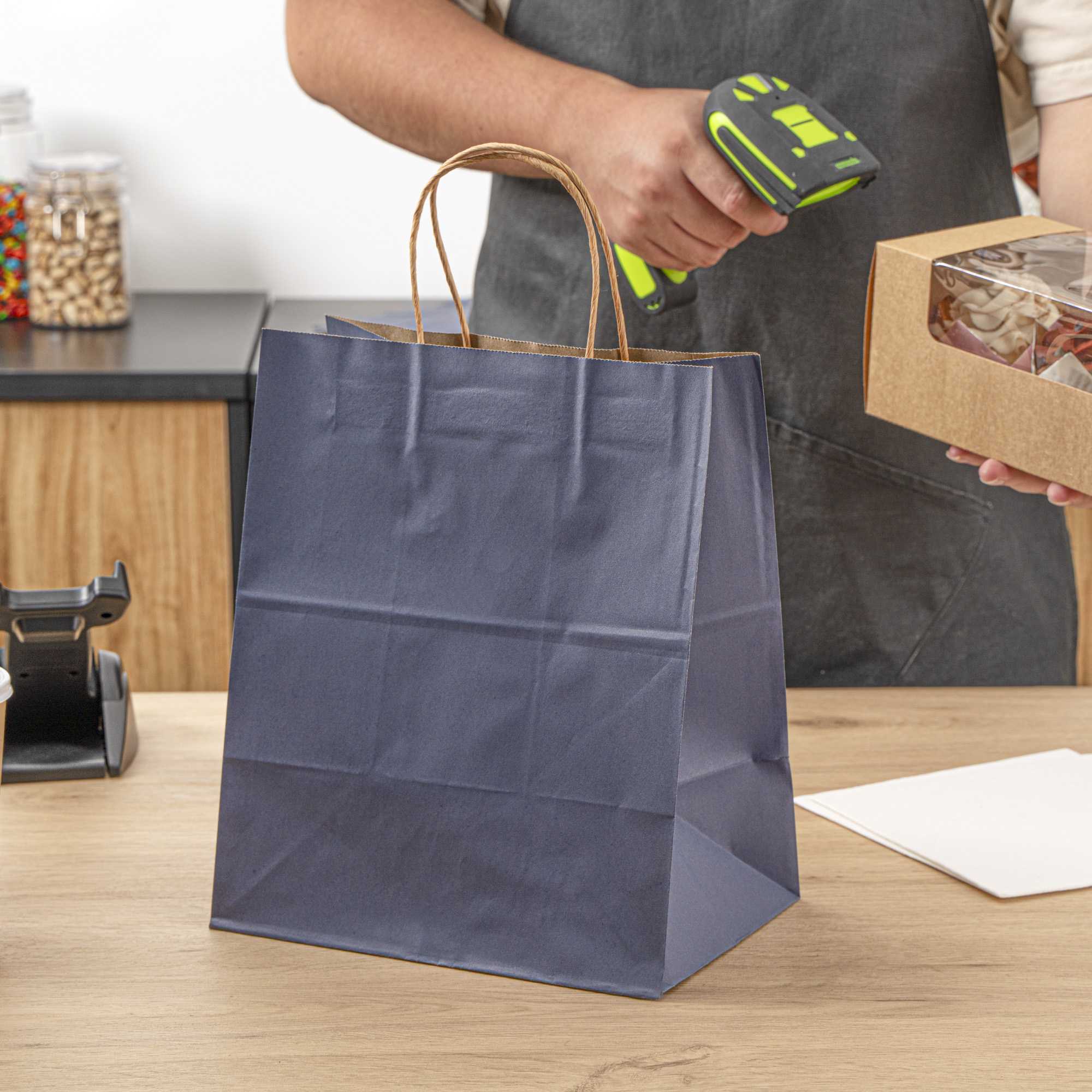 The flat-fold design of these paper shopping bags allows you to easily store them and expand when ready for use. Efficient in every aspect!