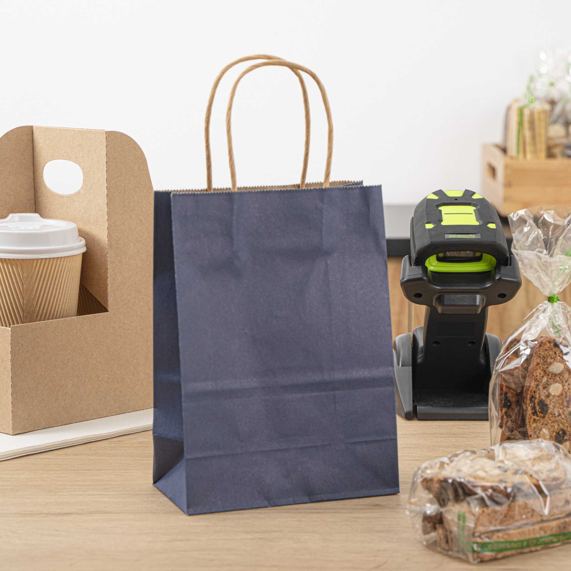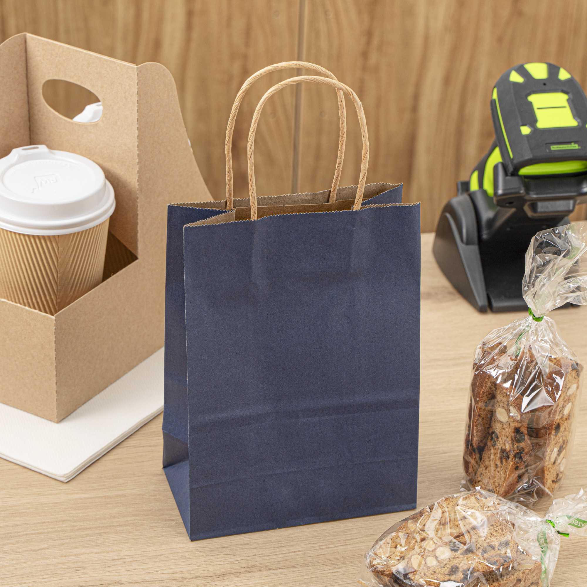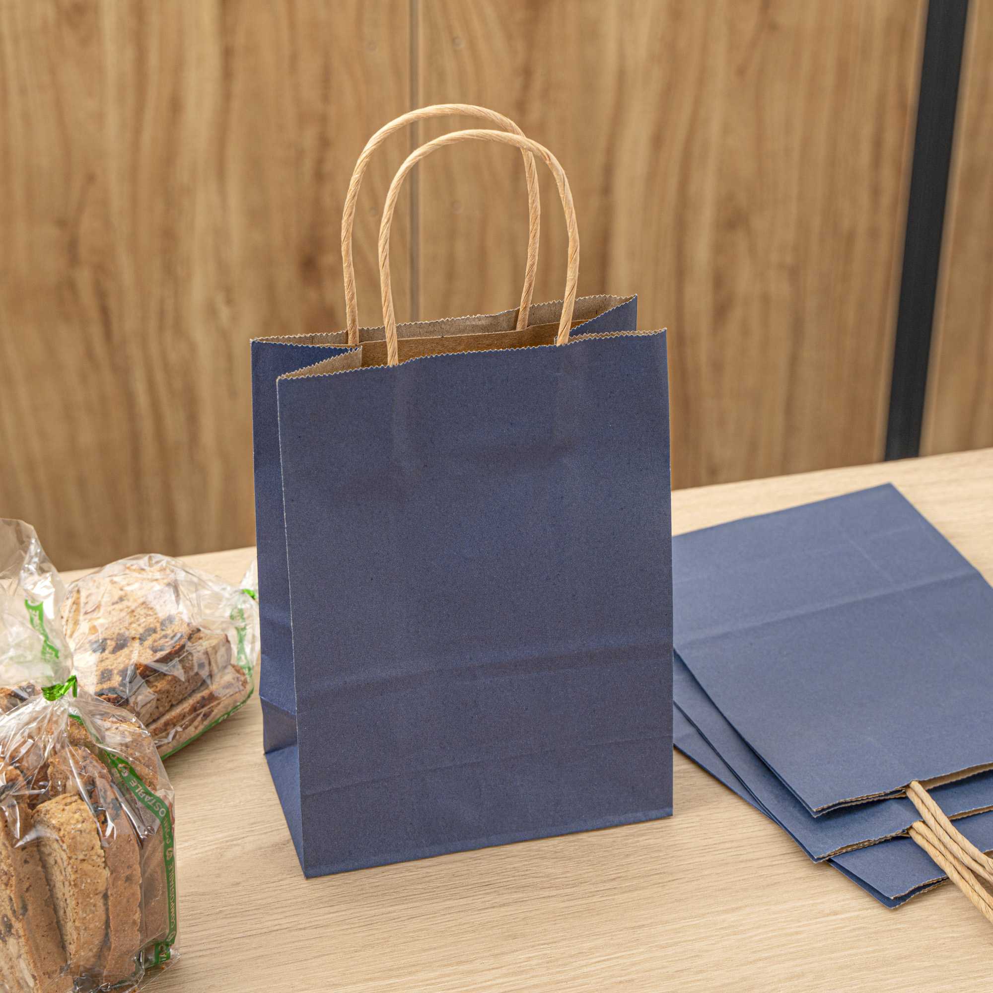 DARK BLUE PAPER SMALL RETAIL BAG - WITH HANDLES