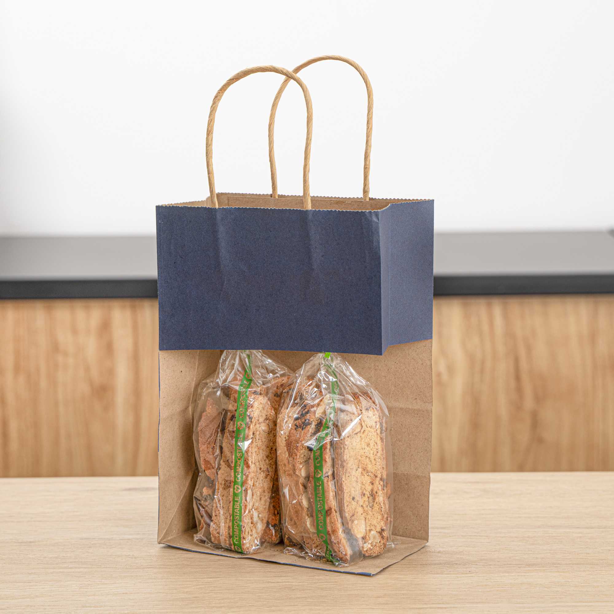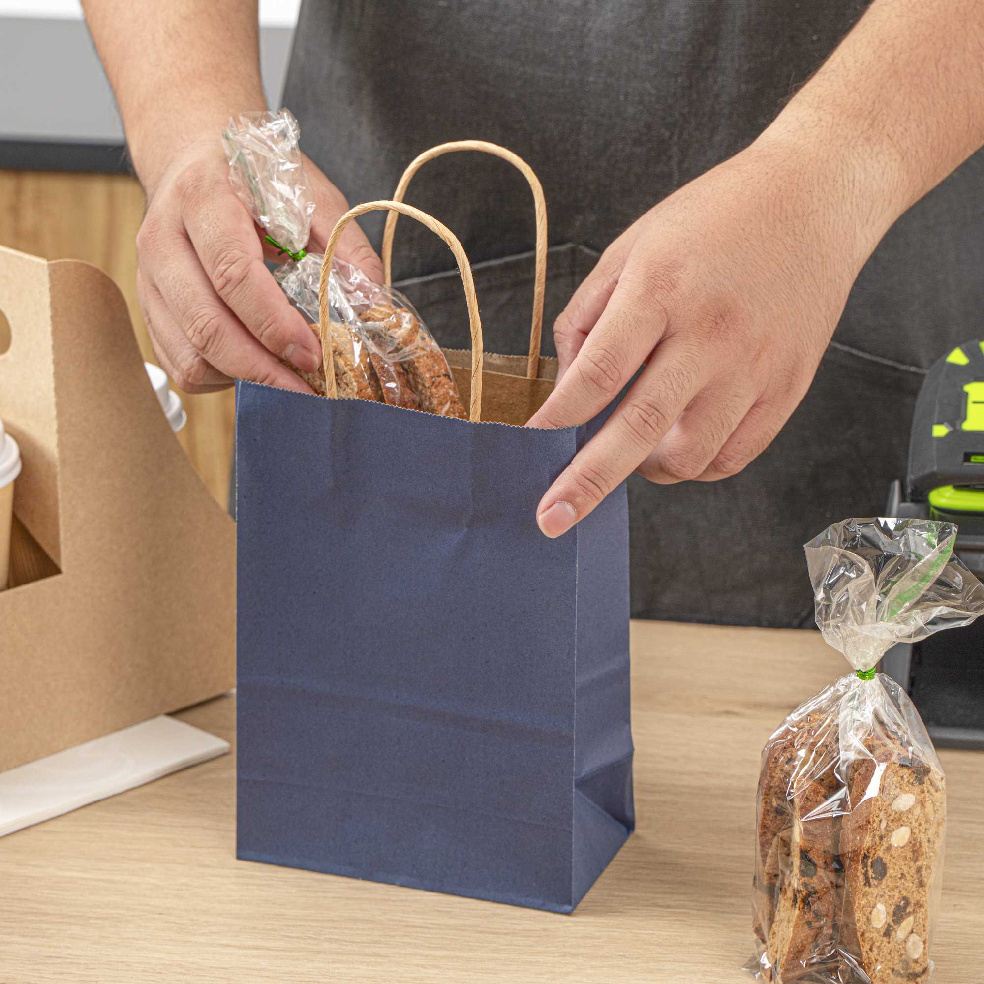 The rectangular base of these paper bags with handles provides a flat surface that evenly distributes weight to reliably hold heavy items without tearing. Open-top design for easy access!