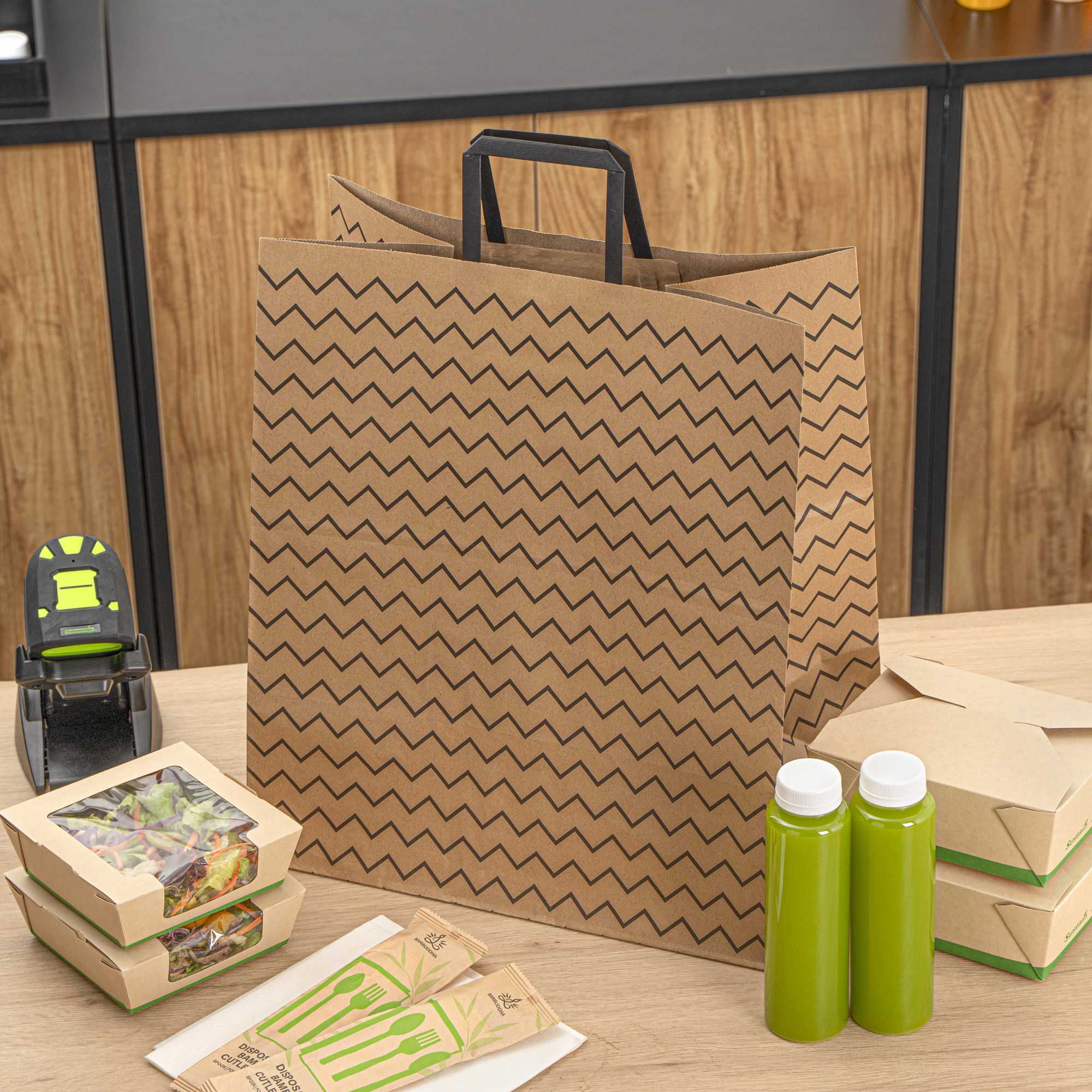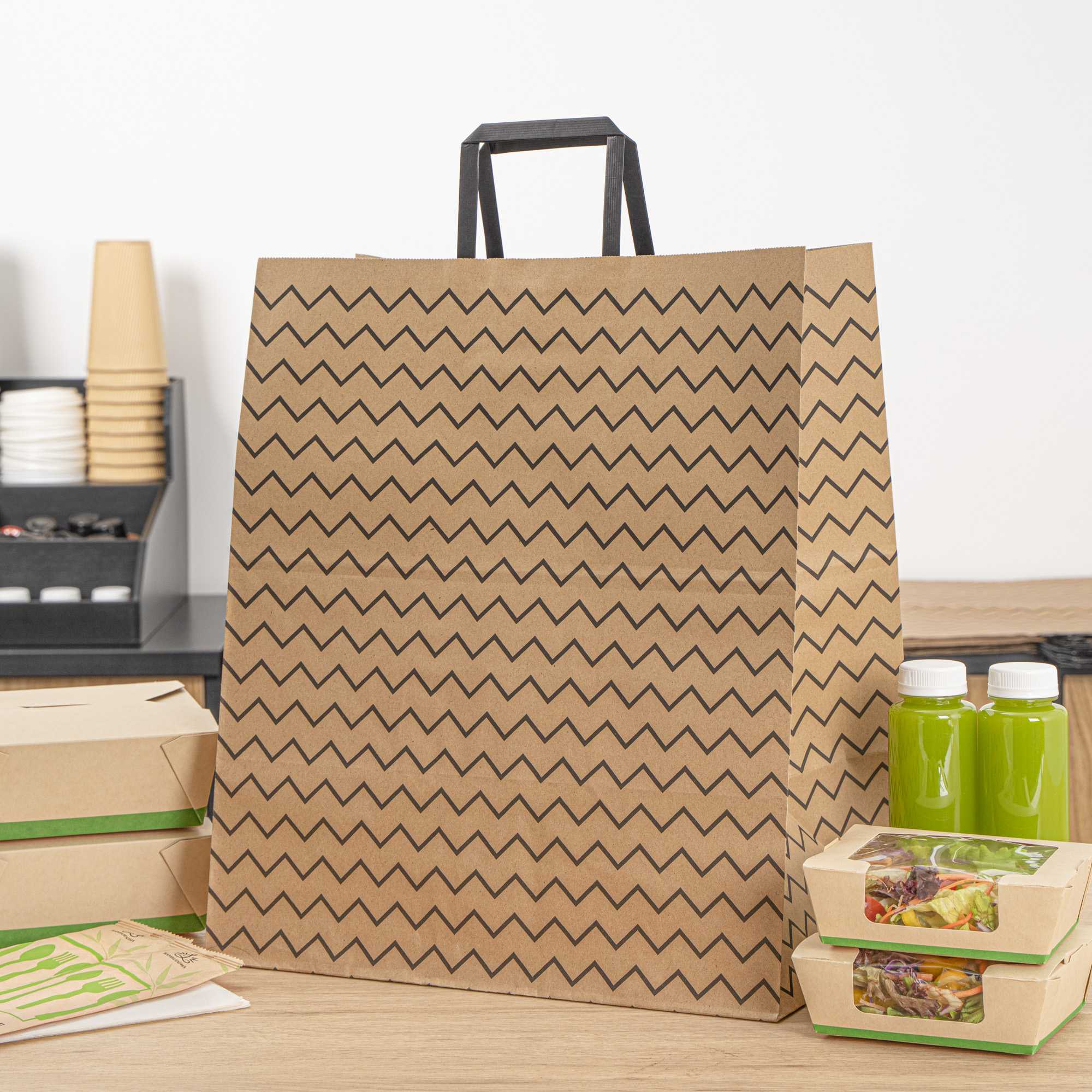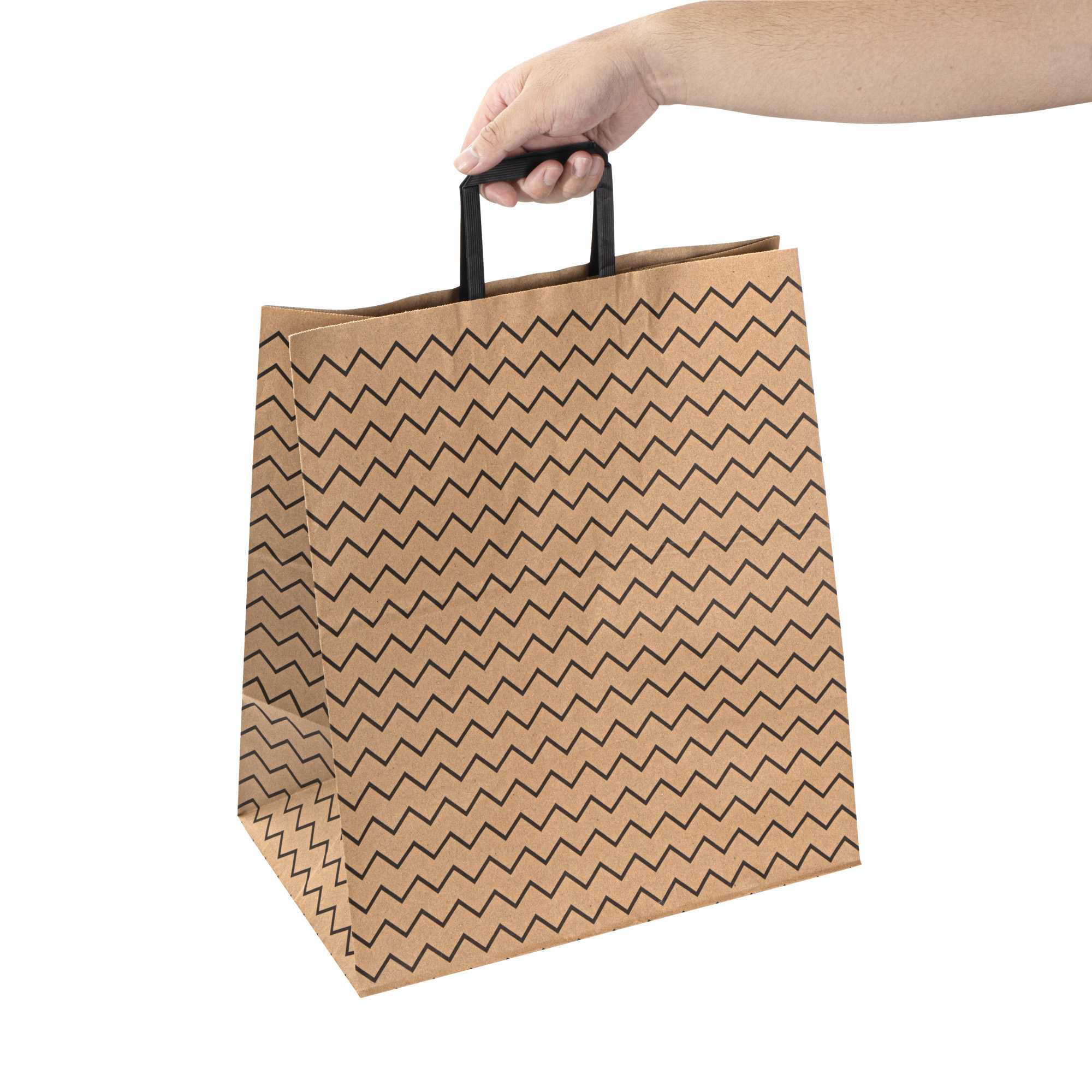 KRAFT PAPER LARGE RETAIL BAG - BLACK ZIG ZAG, WITH HANDLES
