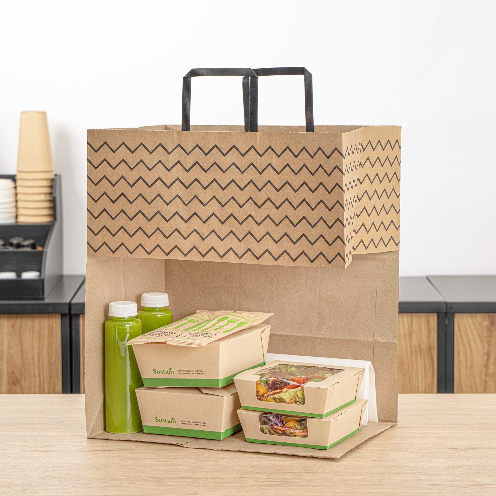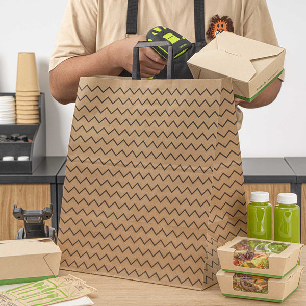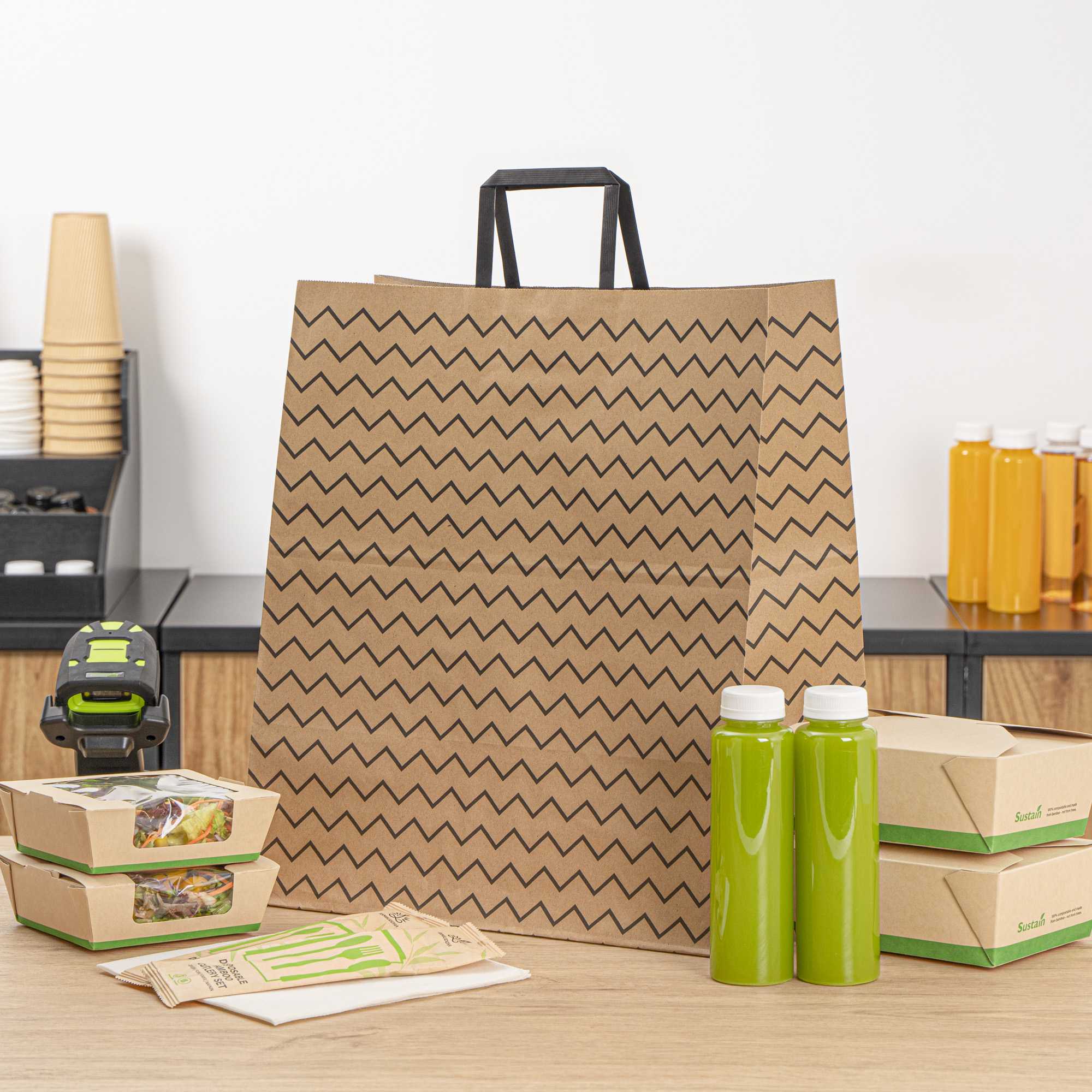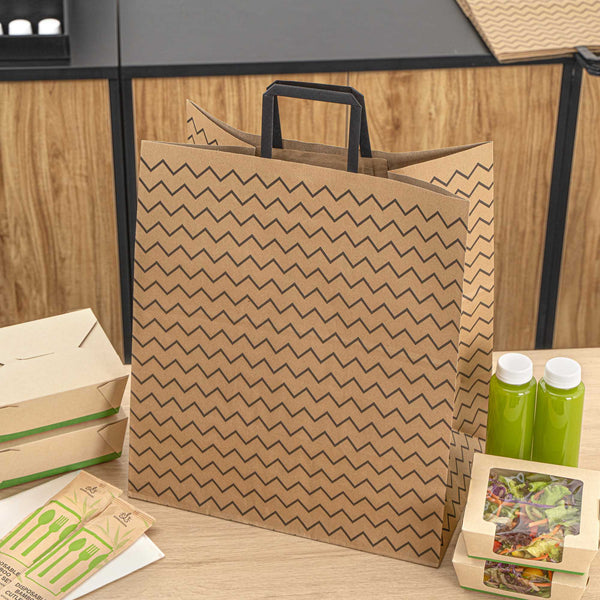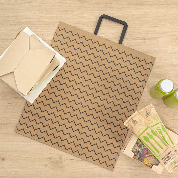 KRAFT PAPER LARGE RETAIL BAG - BLACK ZIG ZAG, WITH HANDLES