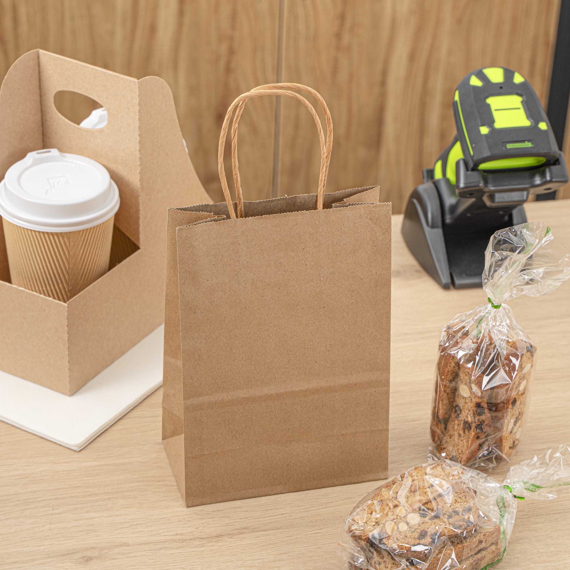 KRAFT PAPER SMALL RETAIL BAG - WITH HANDLES