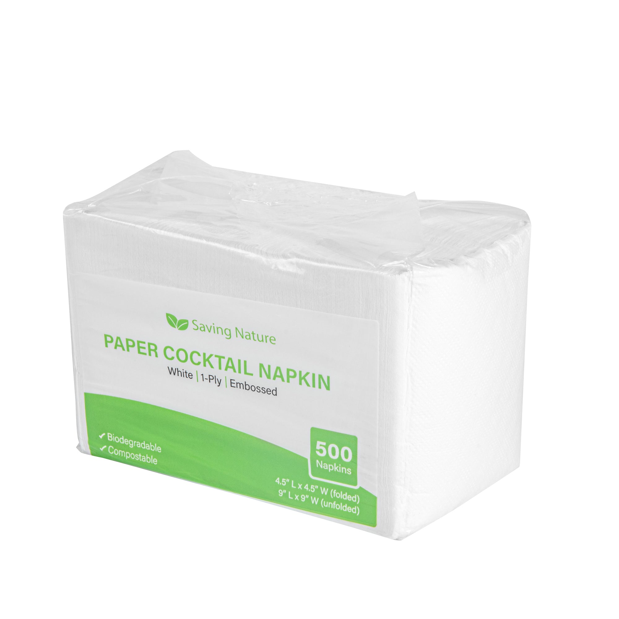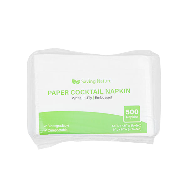 Add a touch of elegance to your dining table using our Saving Nature Square White Paper Cocktail Napkins. Made from kraft paper, these recyclable table napkins are durable and wipe off any mess. Plus, these single-ply dinner napkins do not tear easily, even when used to remove liquid mess. These cocktail napkins are styled with snowflake designs to elevate the look of your themed parties. To reduce your carbon footprint, these commercially compostable napkins for restaurant are disposable. The bright white shade of these paper napkins with design blends with any tablescape. These square paper napkins measure 9 inches in length by 9 inches in width when unfolded and 4.5 inches in length by 4.5 inches in width when folded. Shipped in a 4,000 count box.