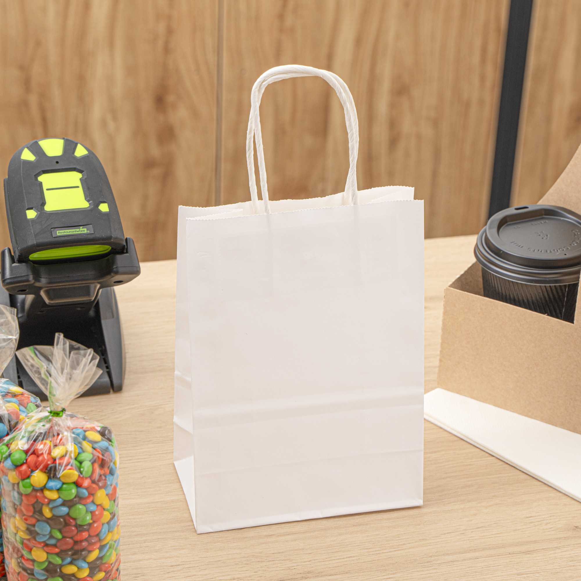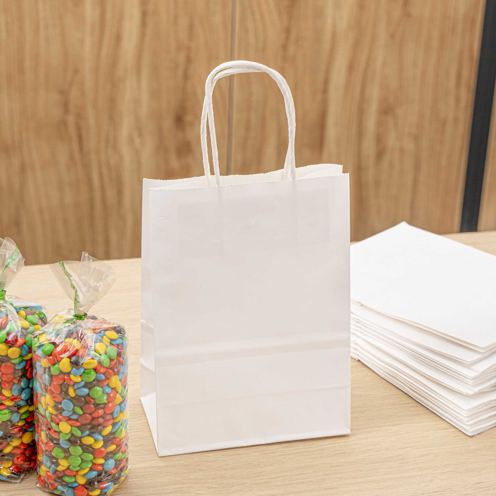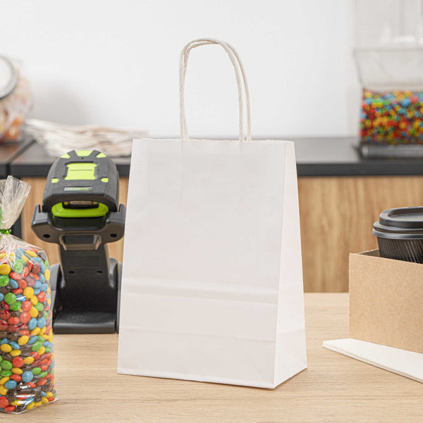WHITE PAPER SMALL RETAIL BAG - WITH HANDLES
