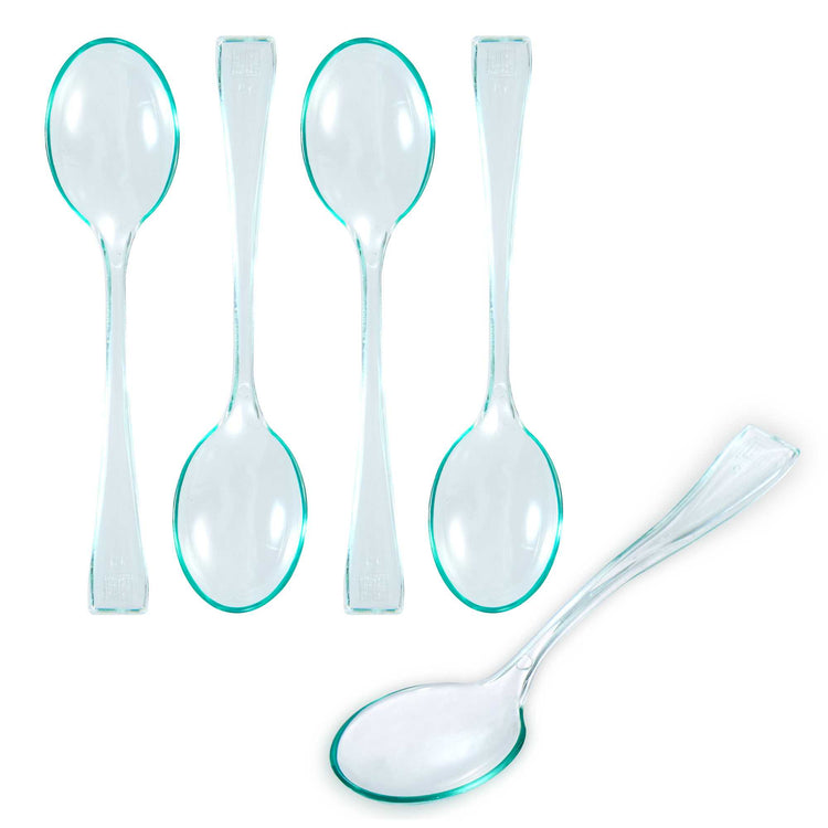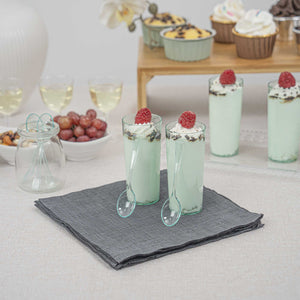 Perfectly blend functionality with sustainability using our Mini Serve Seagreen Plastic Mini Spoons. Featuring a glass-like translucent finish, these seagreen plastic spoons are designed to effortlessly enhance the presentation of your tantalizing dishes. Made of premium plastic, these premium mini spoons are recyclable. With durable construction, these disposable plastic spoons are sturdy and do not break while holding hefty bite-sized treats. Ideal for busy cafes and food establishments, these sturdy spoons can be disposed of after use and require no cleaning. Each spoon for mini desserts measures 4 inches in length. Sold in a 500 count box.