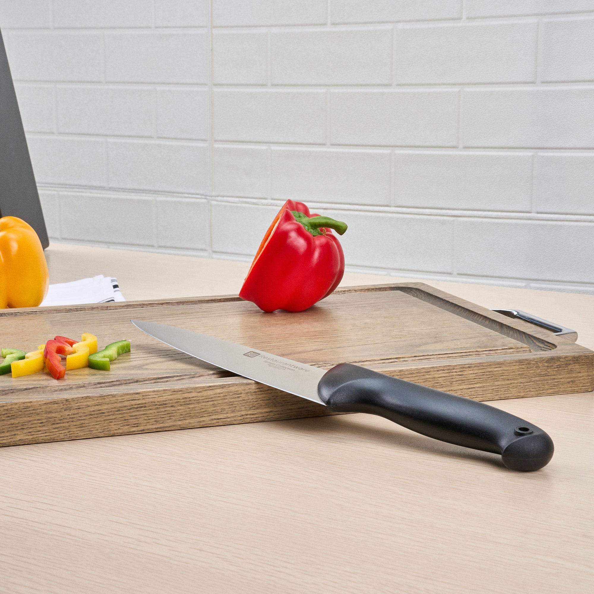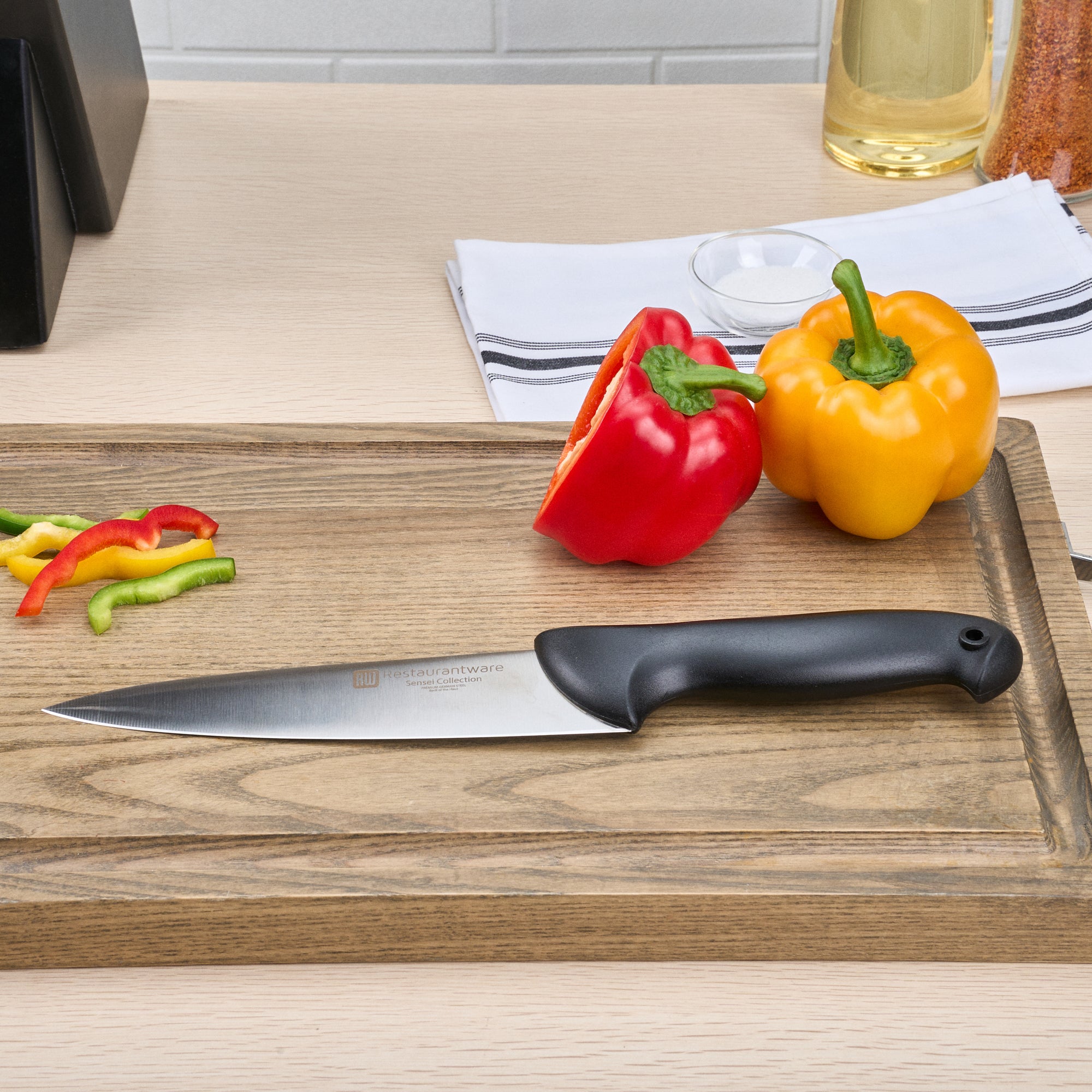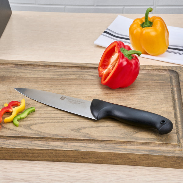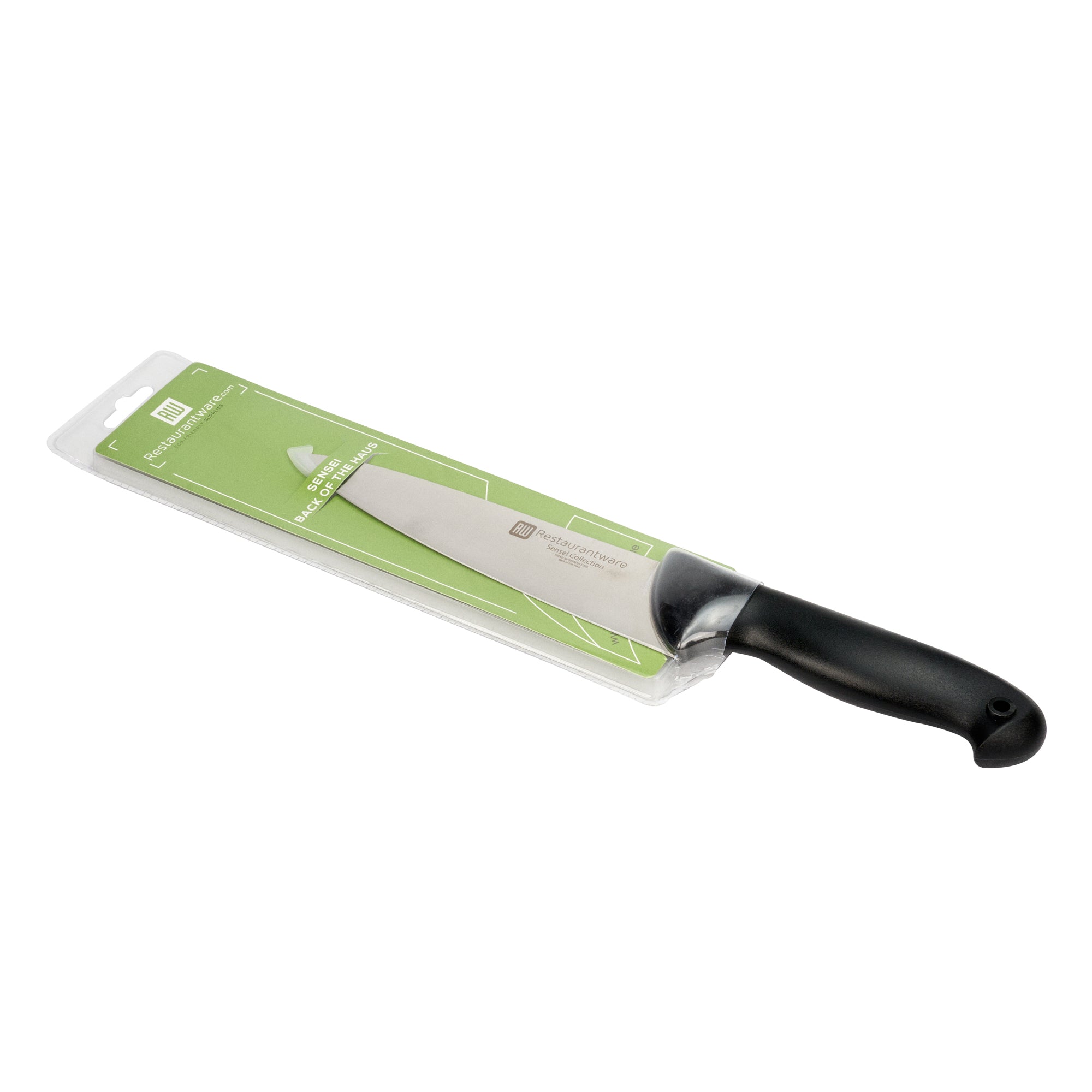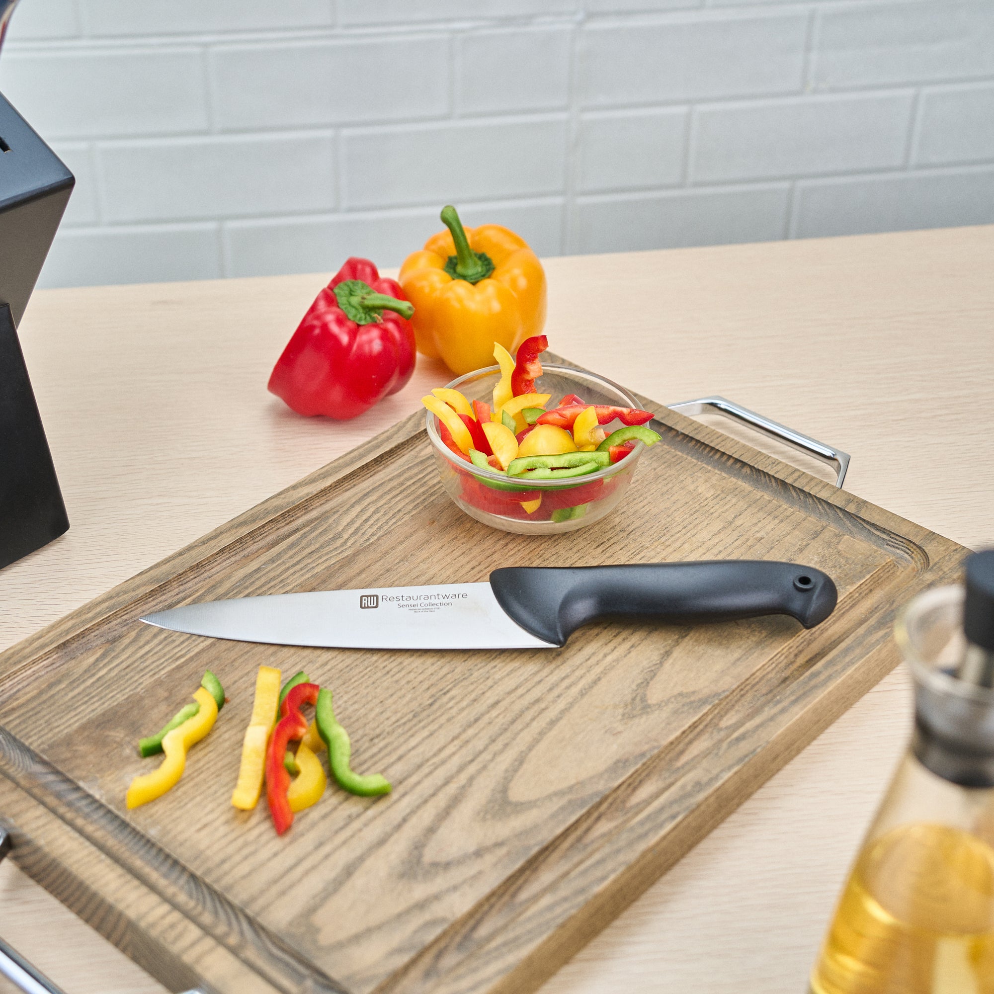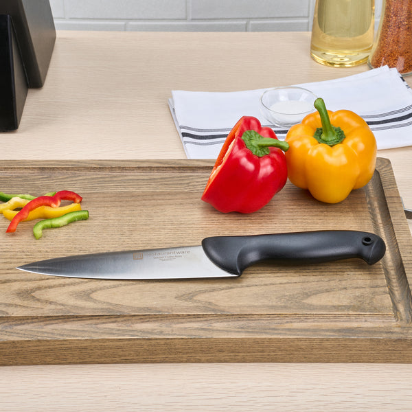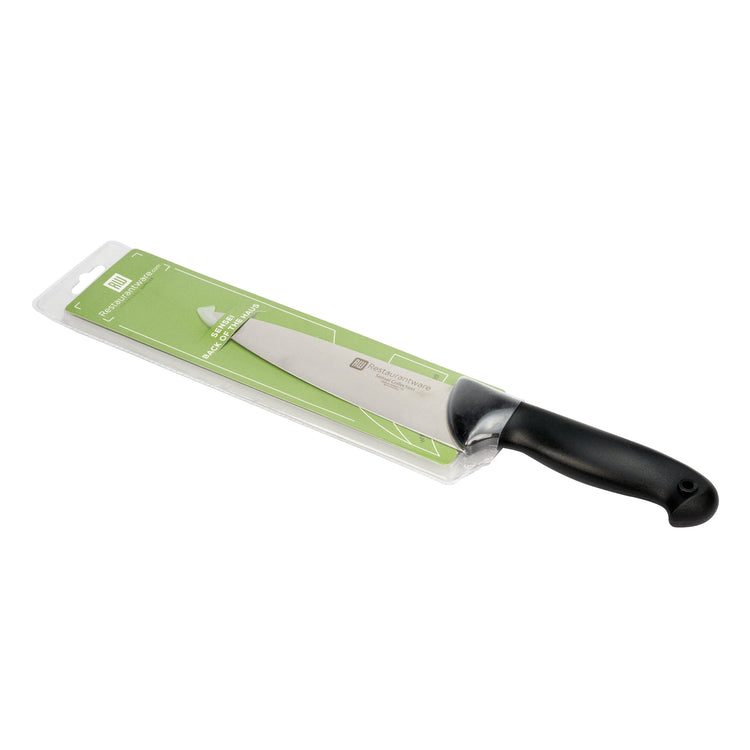 These kitchen knives feature ergonomic plastic handle that provide a secure grip while prepping foods. Designed for optimal comfort while performing multiple tasks.