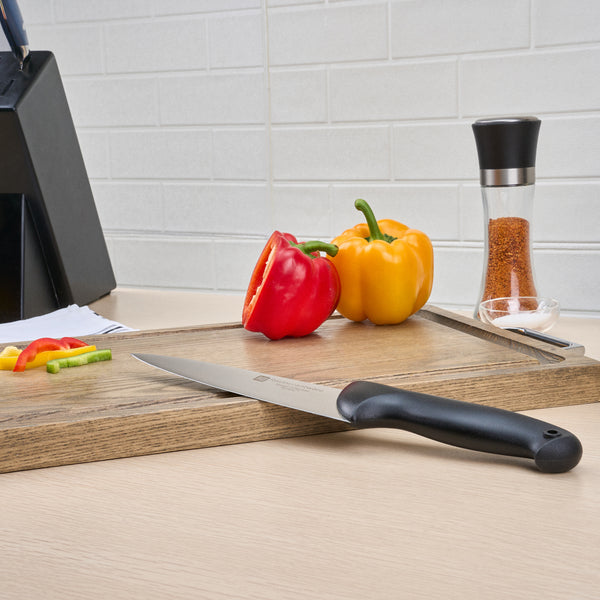 These premium kitchen knives are sold in 8-piece set or individually. Whether you are experienced in the kitchen or simply just getting started, these steel knives fulfill all your slicing and dicing needs.