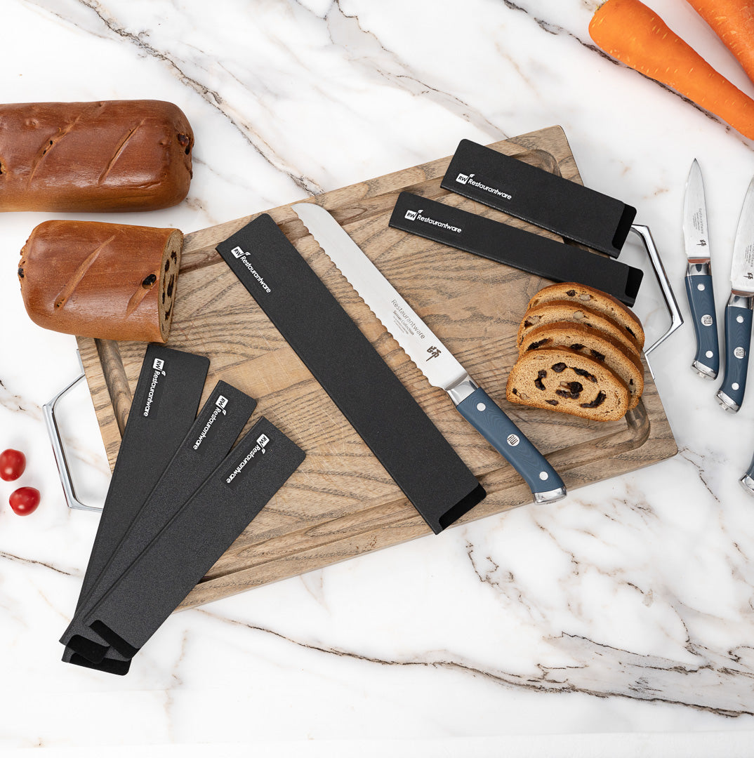 These plastic knife covers are designed to perfectly fit our Sensei Steak Knives, ensuring secure storage and protection. It is an ideal accessory for properly storing your knives before any food preparation tasks.